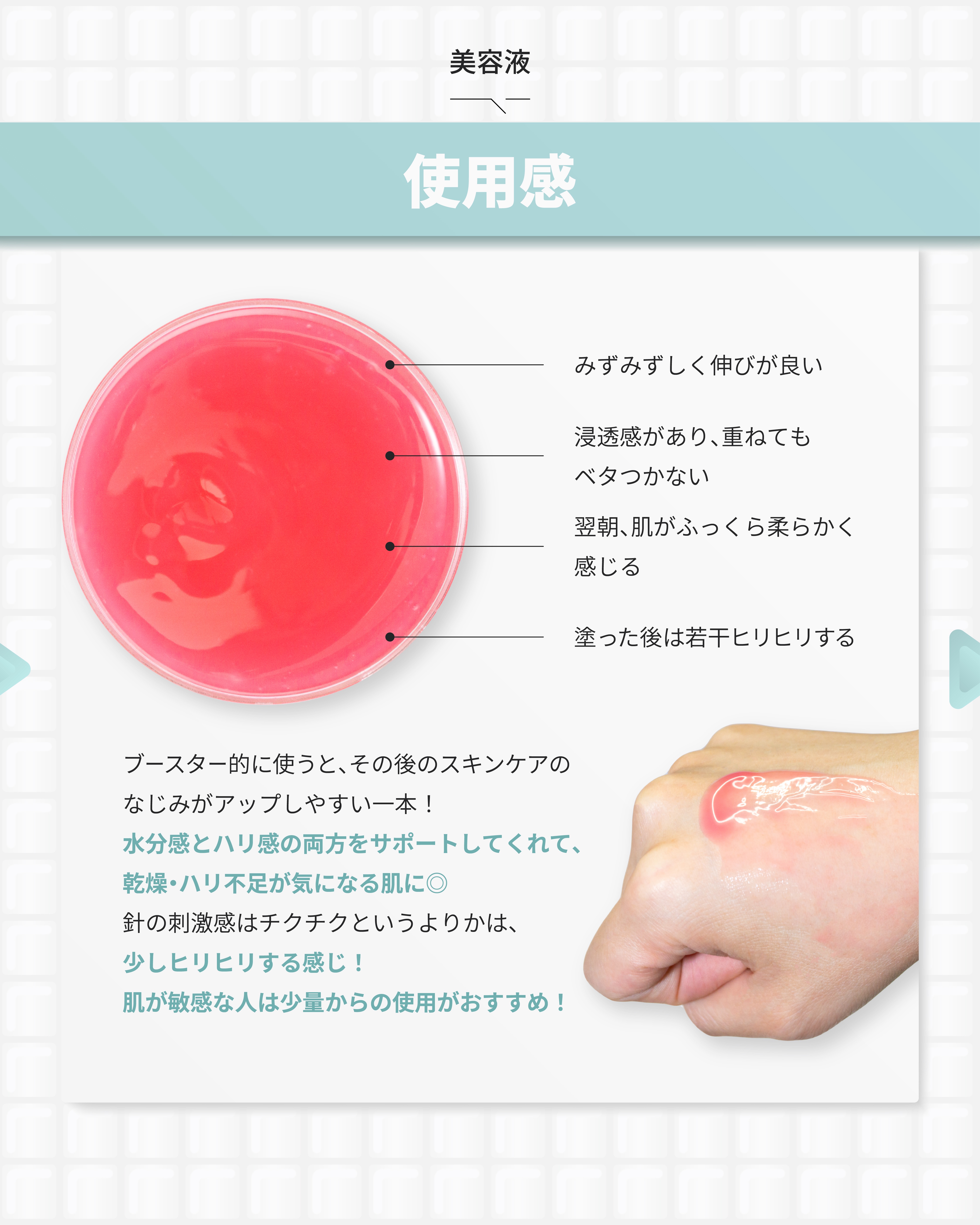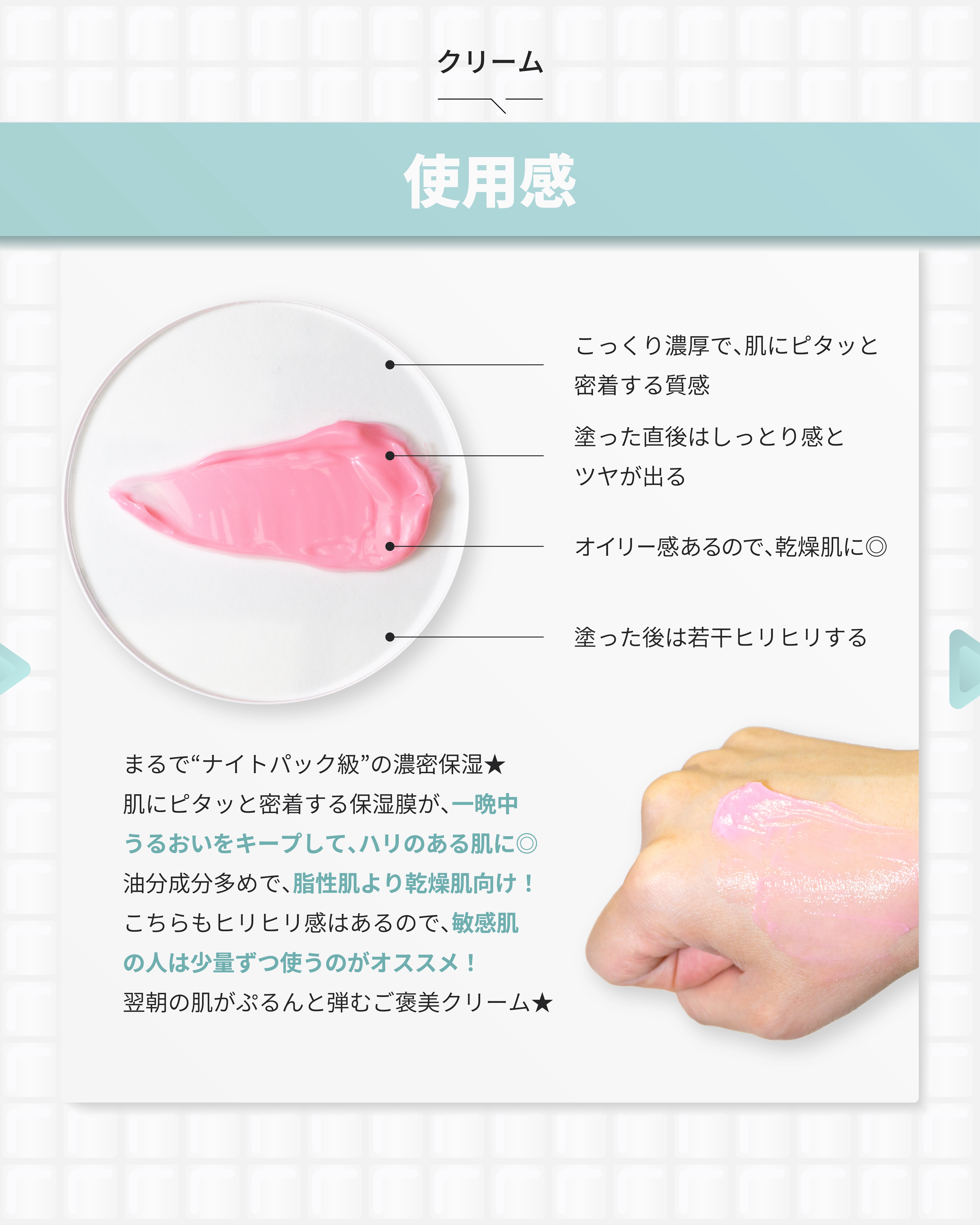 | テクスチャーは、緩めで ベタベタしなくて使いやすい! | 詳細を見る | ||