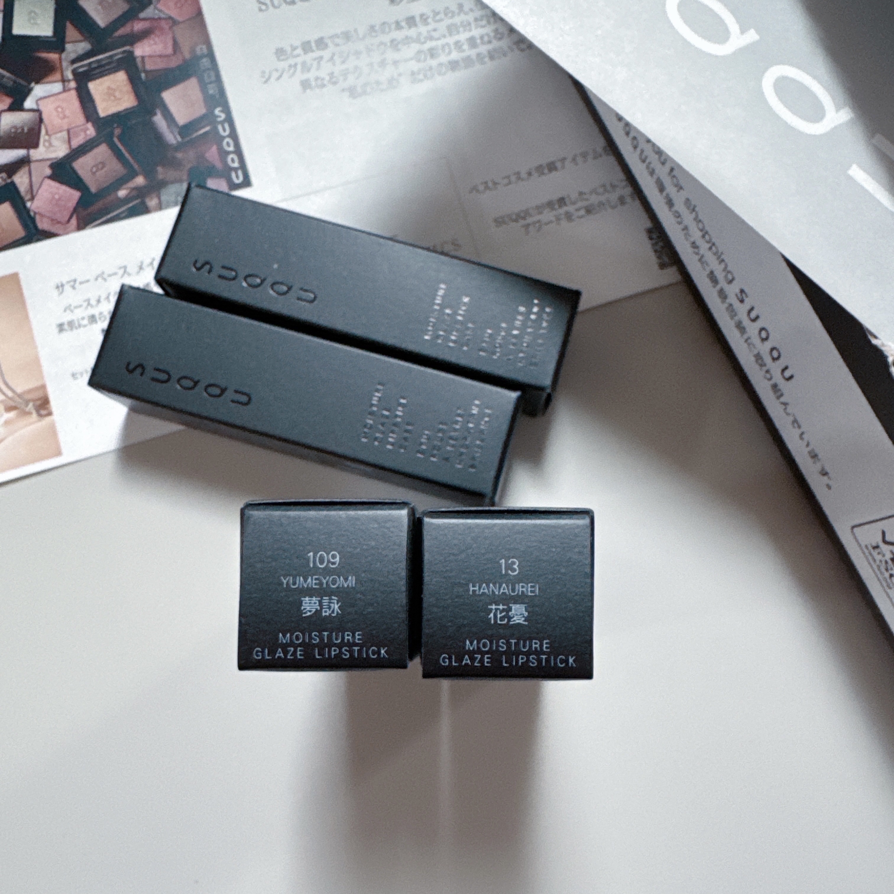 SUQQUはモチモチな塗り心地でむっちりした唇になり、シアーで潤いが続くのに色もちも良いです KANEBOはスルスルとモチモチの中間の塗り心地で色もちが良く、オフしたあとも唇がしっとりする美容液リップです 個人的に好きなのはSUQQU 103は定番色にしてほしい🥺