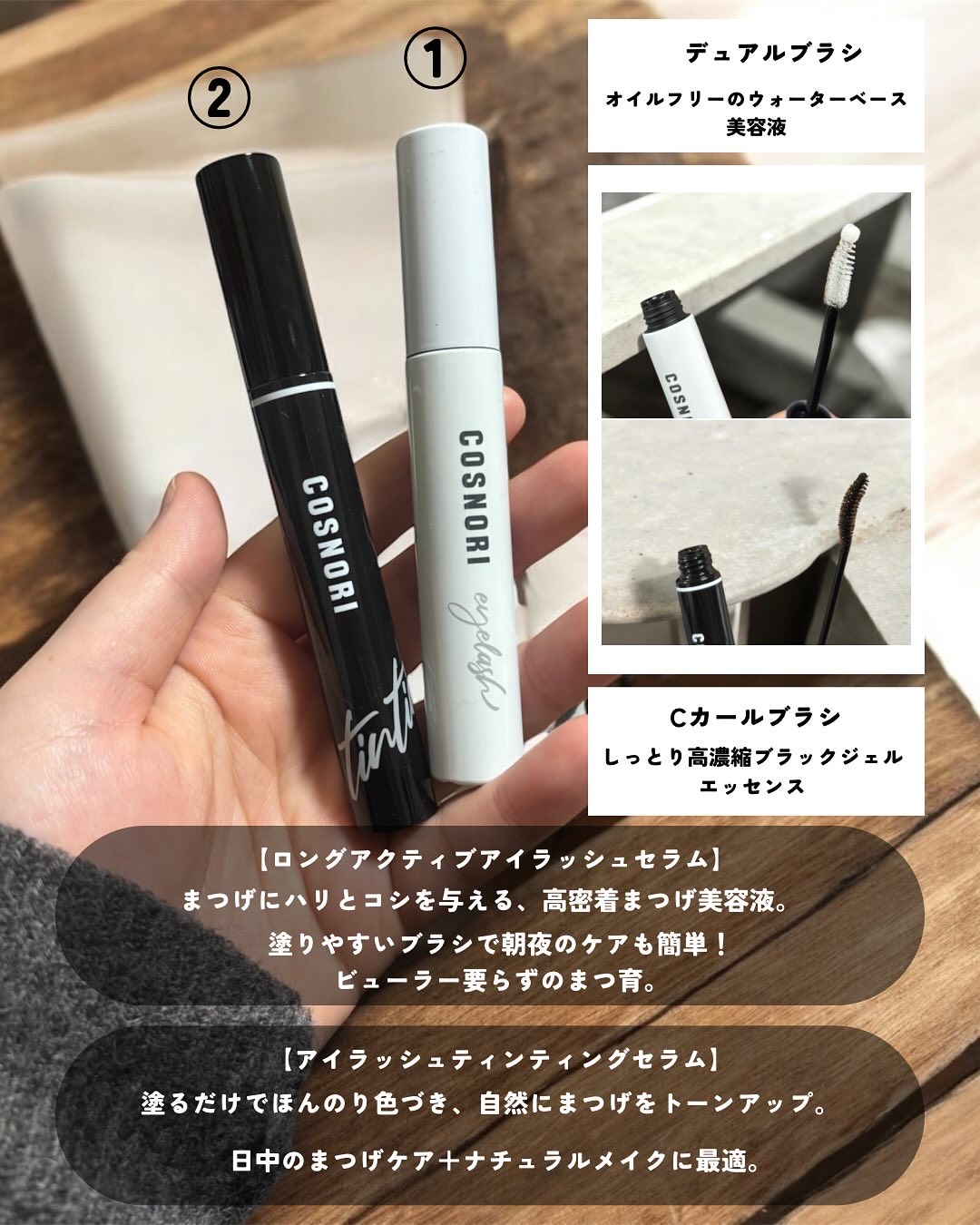 。COSNORI@cosnori_jp全国のバラエティーショップで購入可能✨ロングアクティブアイラッシュセラム&アイラッシュティンティングセラム☾⋆·̩͙⑅*夜はロングアクティブアイラッシュセラムでまつ毛にたっぷり栄養補給✨まつ毛ケアのために...