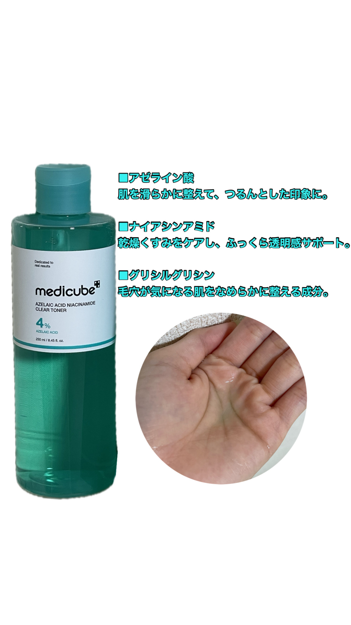 .\medicube/(@medicube_officialjapan)『むーんぱわーさろん』のプレキャンでいただきました♡ˊ˗■アゼライン酸ナイアシンアミドクリアトナー250ml高純度99%アゼライン酸4%×ナイアシンアミド2%配合でニキビ...
