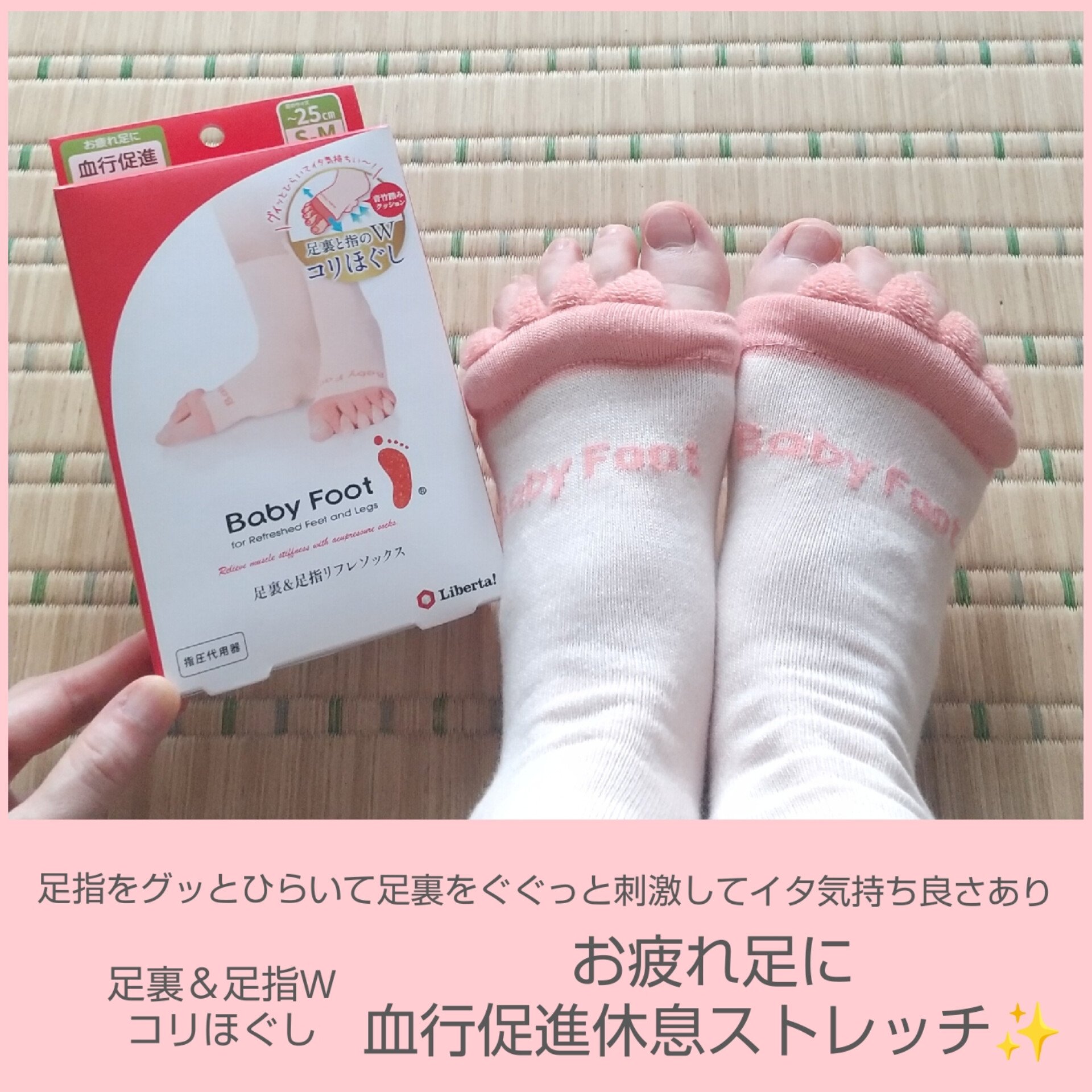 ベビーフット足裏&足指リフレソックスをお試しさせていただきました。ふんわりとした肌触りの良い生地。さらりとした履き心地でむれにくく、快適な履き心地です。指と指の間を優しく広げてくれて、気に入っています。▼ベビーフット足裏&足指リフレソックス履...