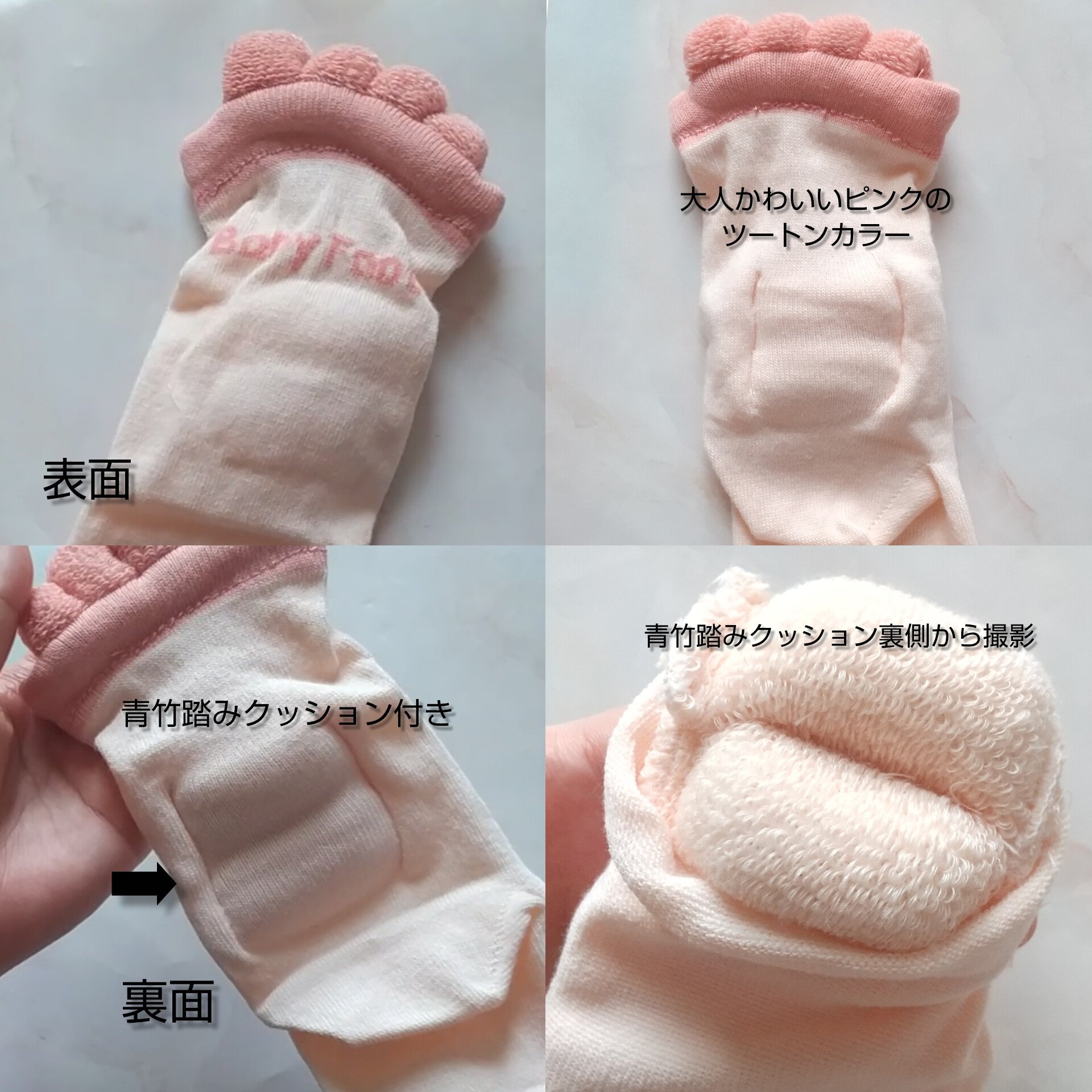 - ■履くだけ指圧代用器!土踏まずを刺激する硬めの青竹踏みクッション 靴下の内側の青竹踏みクッションが、足裏をググっと刺激して、歩くたびにコリをほぐす。 ■窮屈な足指を優しく開放してくれる足指セパレートループ 足の指と指の間を足指セパレートループが優しく広げ、ヒールなど足先の狭い靴の使用で窮屈になってしまった足指を心地よく解放してくれます。 ■締め付け過ぎないゆるふわリブ 冷えやすい足元にうれしい足首まで覆うミドル丈。締め付け過ぎないやわふわリブで肌当たり柔らか。 ■洗って繰り返し使える。オールシーズン快適素材 通気性の良い快適素材で季節問わず着用可能です。 ■大人可愛いピンクのツートーンカラー 2025年4月14日(月)より楽天市場にて先行予約販売を開始