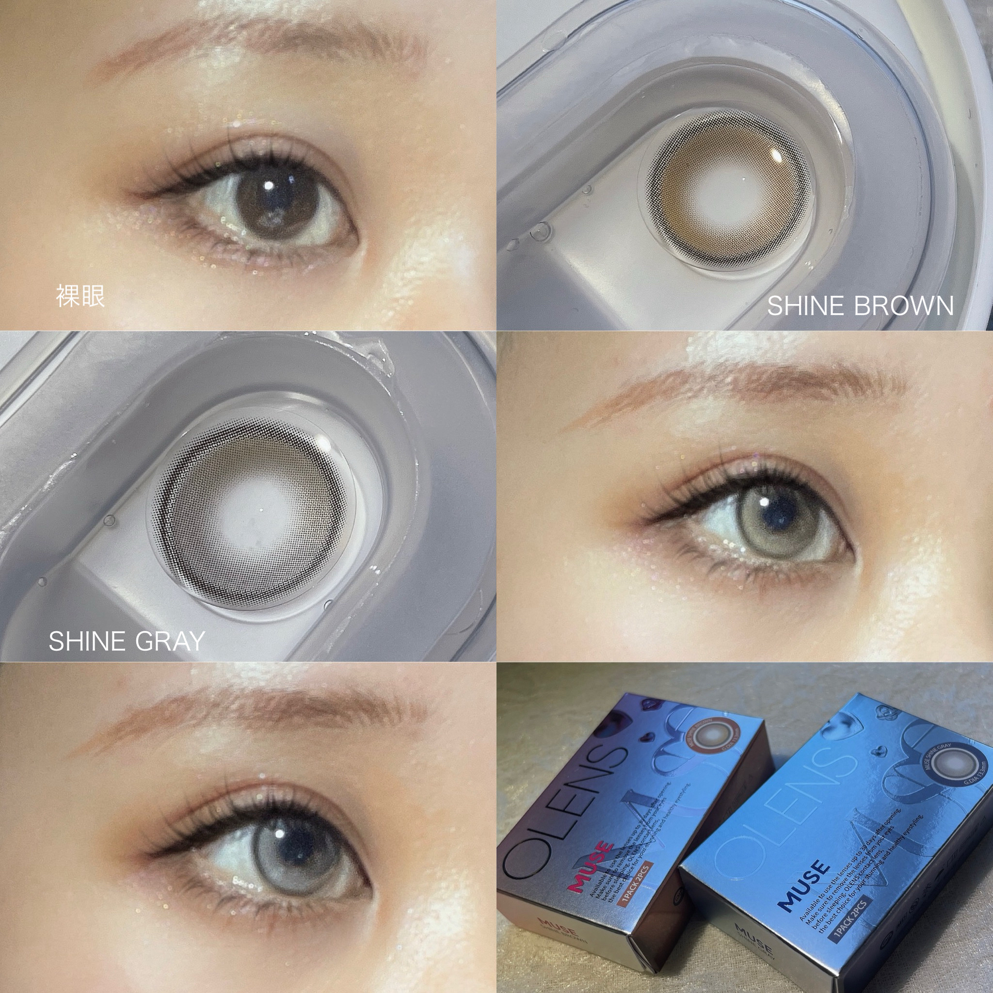 OLENSMUSE1month☑︎ShineGray︎☑︎ShineBrownDIA14.0mm着色直径13.3mm含水率38%ビー玉のように盛れる明るめハイライターでツヤ感のある目元を演出する水光カラコン✨ちゅるんとした透明感のある瞳に♡@...