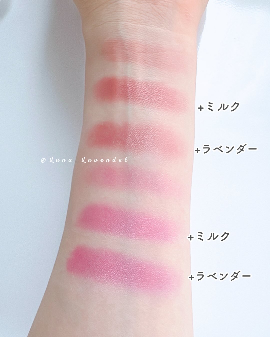 これ、アイベースとしてはもちろんチークベース使いが至高👑 色白の人のまぶたに透けるような透明な紫陽花色(白みがほぼ無く、花びらの抽出液のような色)×みずみずしいのに伸ばすと無重力になるテクスチャーが絶妙。 青みカラーも 青みじゃないカラーも そのままばっちり発色。