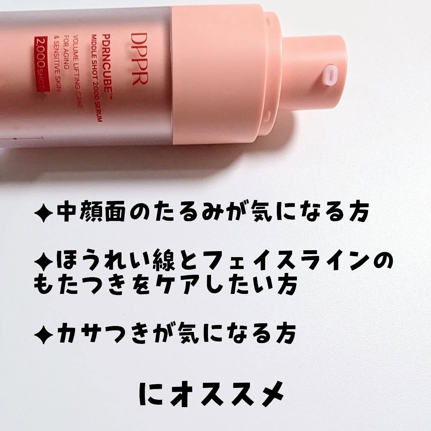 DPPRPDRNキューブミドルショット2000セラムたるんだ中顔面を引き上げて微細刺激で固定する中顔面圧縮セラム🩷肌の奥から引き締めハリのある肌へ✨スピキュールが配合されてハリおよびリフトアップに役立ちます✨お肌を支える役割をする高分子・中分...