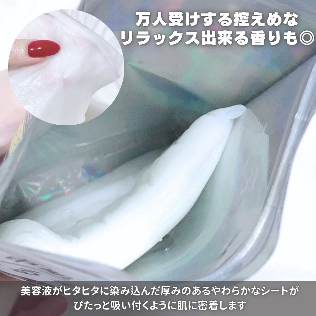 | 柔らかなシートに美容液がたっぷりヒタヒタ! フルーツのような甘い香りがほんのり💗 | 詳細を見る |
