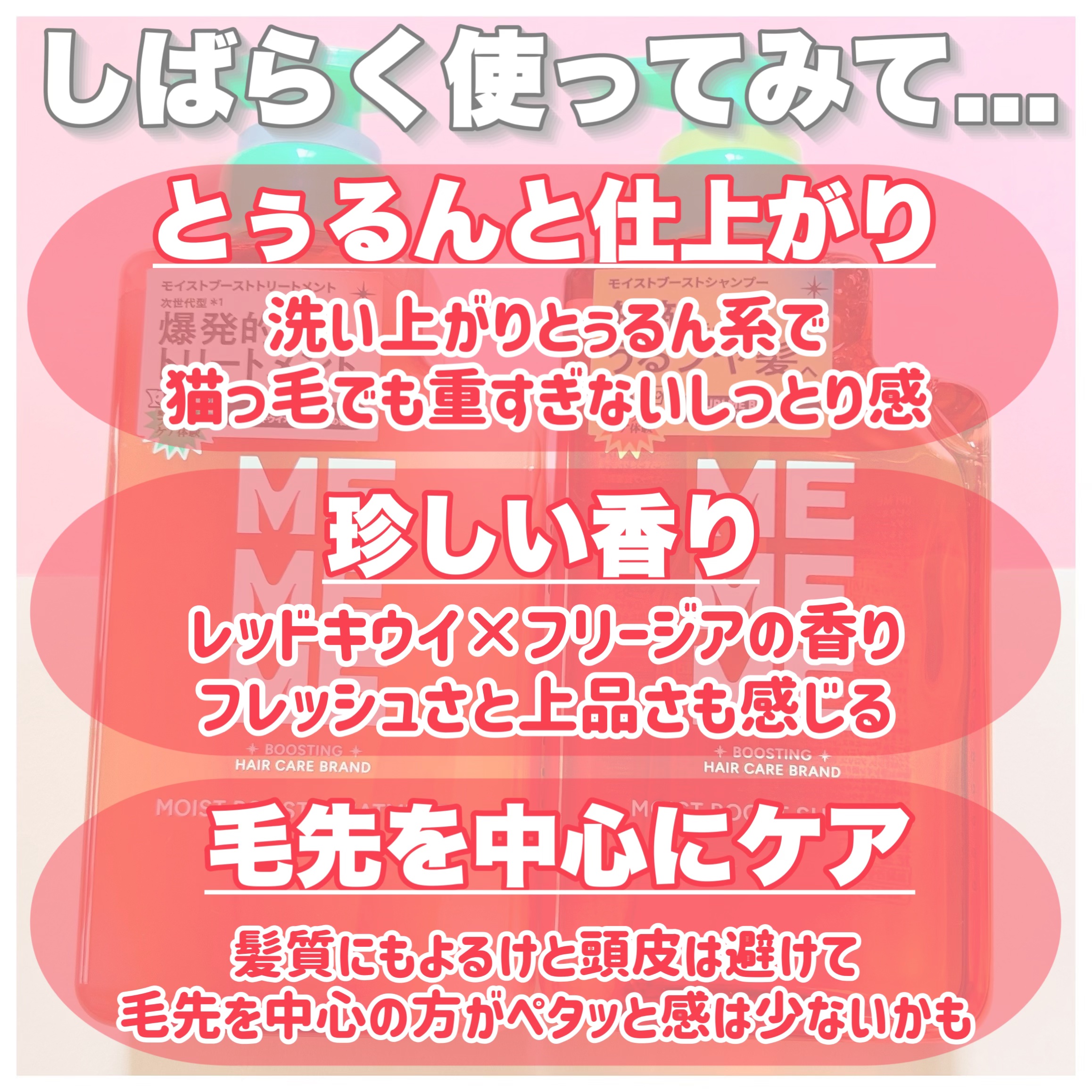 LIPS様を通してMEMEME様より頂きました。\毛先までぷるん❤️𓈒𓏸うるツヤ髪へ/▷MEMEMEモイストブーストシャンプー/モイストブーストトリートメント🆕花王から新ブランド誕生🎊スイカみたいなポップで可愛いパケが目を引くシャンプー&トリ...