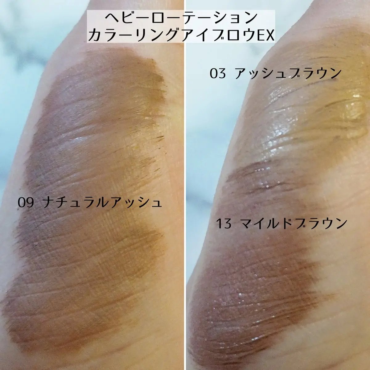 03アッシュブラウンは人気カラー!今回は、うす眉効果にこだわった高発色🤎 13マイルドブラウンは大人の柔らかブラウン、ほんのり赤みが感じられて馴染みが良く、おしゃれカラーで透明感も演出してくれる!