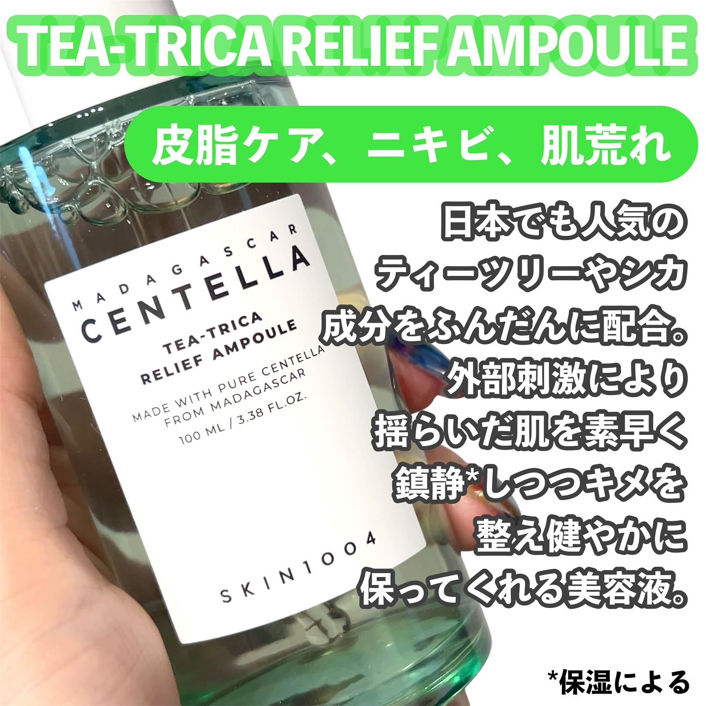 今大人気ブランド【SKIN1004】様の、アンプル全6種類をレビューしました。《センテラアンプル100ml》●商品説明揺らぎがちな肌を素早く引き締めるツボクサエキス*1配合の鎮静*2アンプル。SKIN1004こだわりのマダガスカル産CICA成...