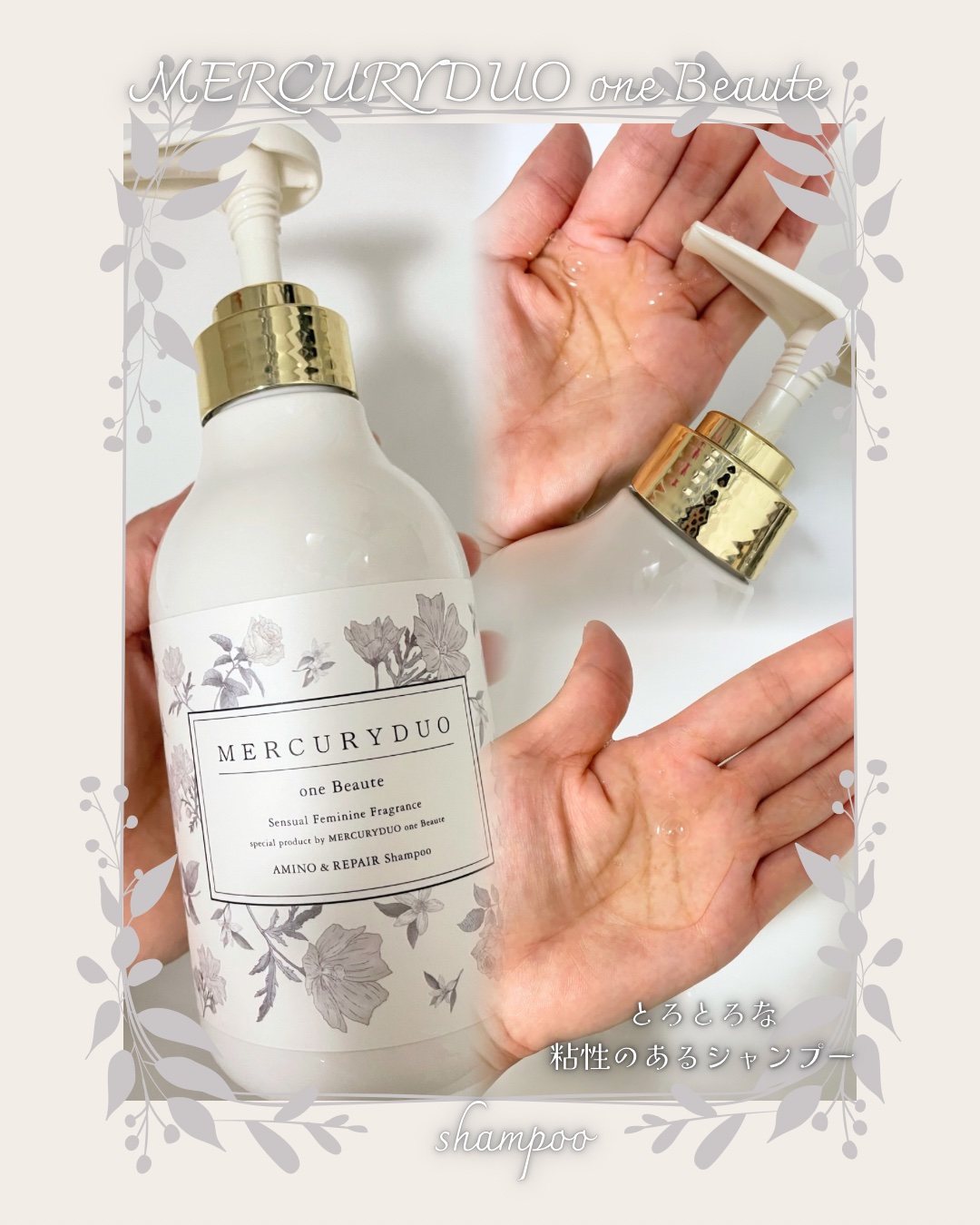 MERCURYDUOoneBeaute◻︎フレグランスシャンプー高保湿のとろとろ粘性シャンプー💭ヒアルロン酸・ケラチン・ヘマチン・エゴマ葉エキス・カゴメエキスなどを配合しているから、補修だけでなくうるおいとツヤをキープしてくれる🤍くせやうねり...