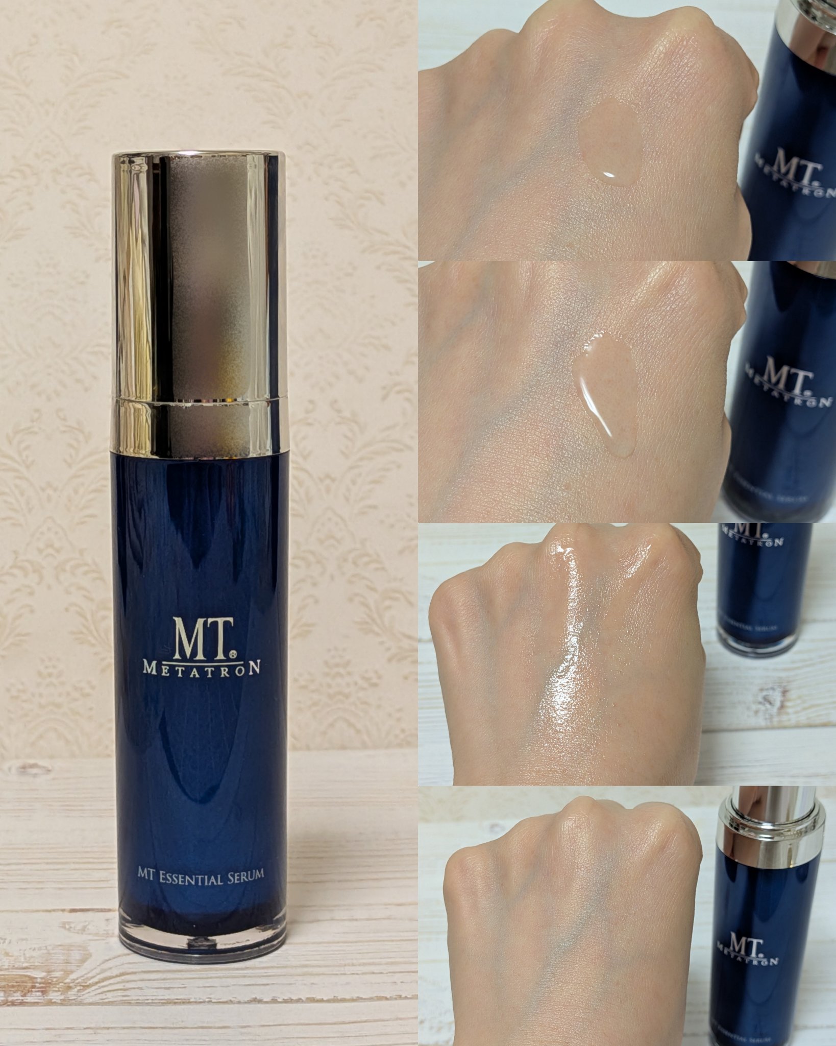 MTエッセンシャル・セラムをお試しさせていただきました。使いやすいプッシュタイプ。量が分かりやすく、さっと使えて便利です。しっとりとリッチなテクスチャー。伸びが良く、なめらかに伸び広がってくれます。肌なじみが良く、べたつきません。優しい使用感...