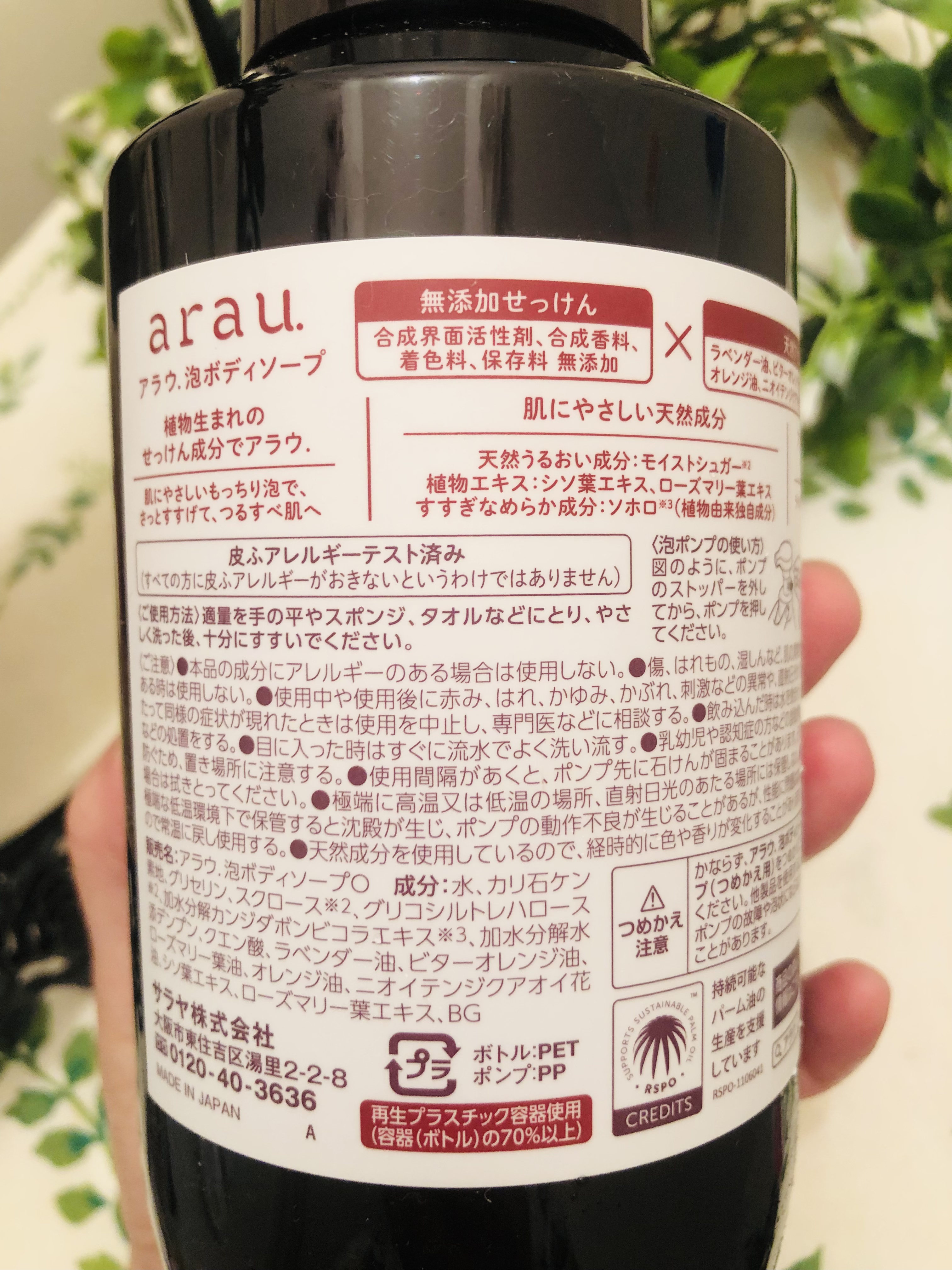 アラウ.泡ボディソープ家族で使いやすいかわいいパッケージ。押すだけでふわっと出てくる、みずみずしいやわらかな泡タイプのボディソープです。この泡の軽さと肌あたりのやさしさが心地いい。肌にのせると、泡がすっと広がって全体を包み込み、汗や汚れたをや...