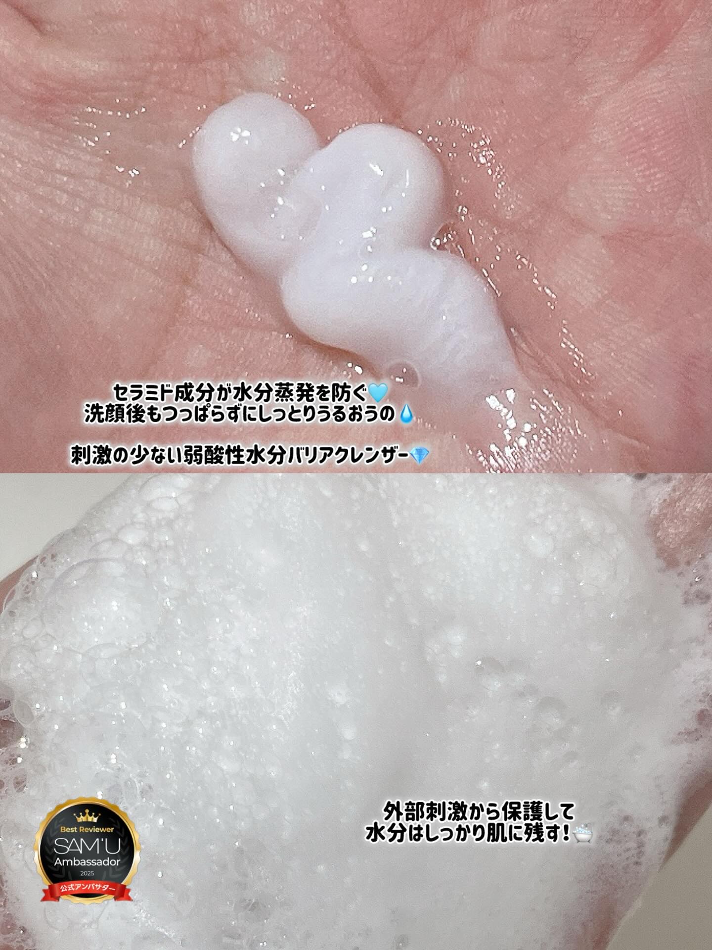 サミュPHセンシティブジェルフォーム乾燥が気になるかたにおすすめな洗顔料セラミド成分が水分蒸発を防いで、しっとりうるおう洗顔をサポートしてくれる弱酸性水分バリアクレンザー柔らかなフォームで泡立ても簡単マイクロ泡が作れるから毛穴汚れまでクレンジ...