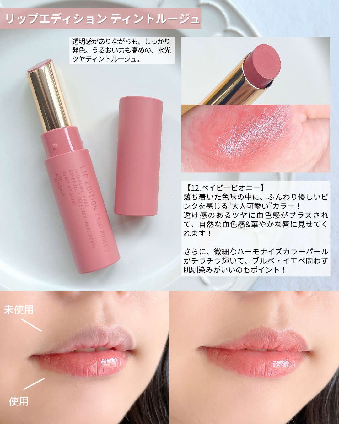 | 乾燥しにくく、艶感をキープしてくれて、ティント特有の色持ちも良く、ぷるっとしたジューシーな唇に仕上がります | 詳細を見る | |