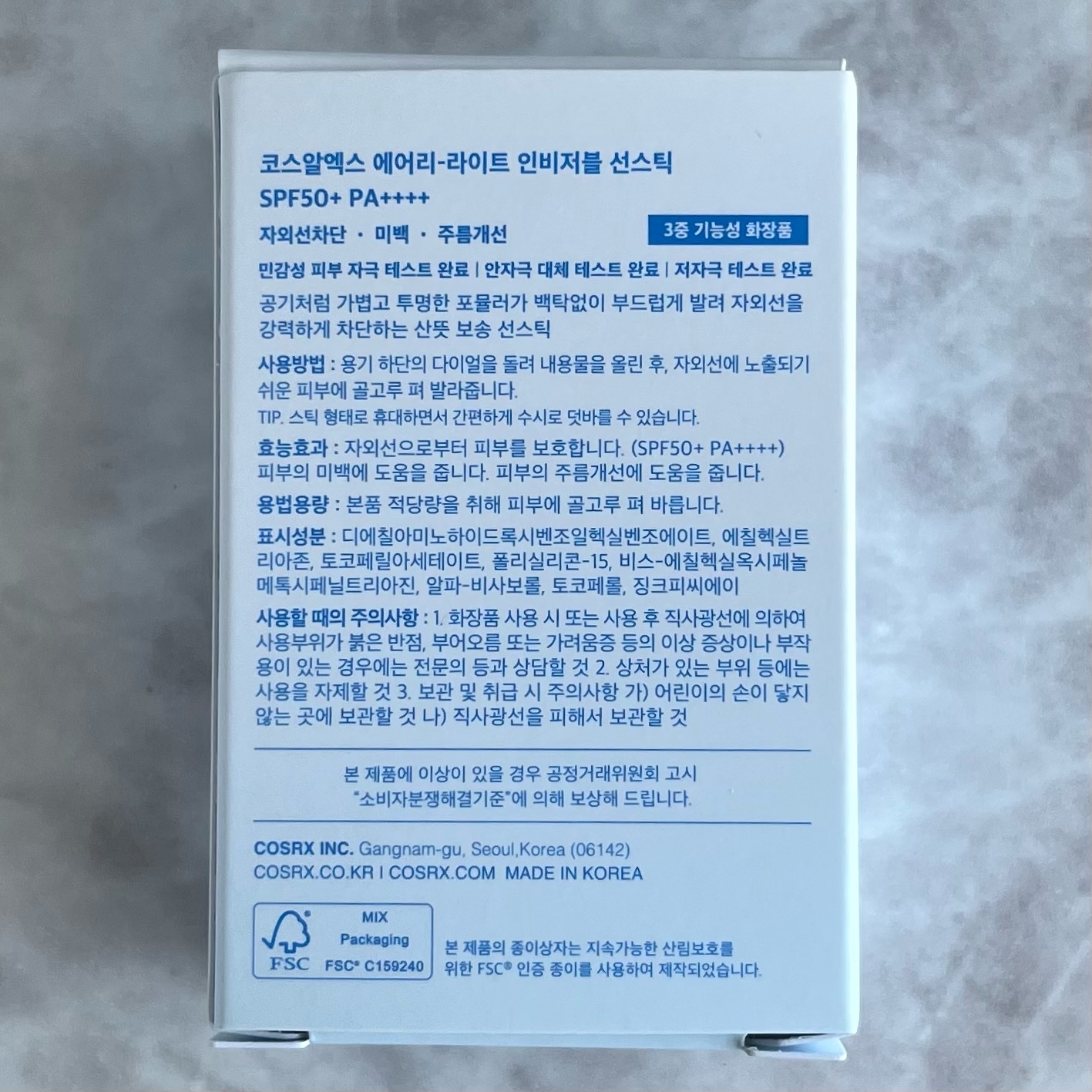商品詳細情報COSRX エアリーライト 透明UVスティック
