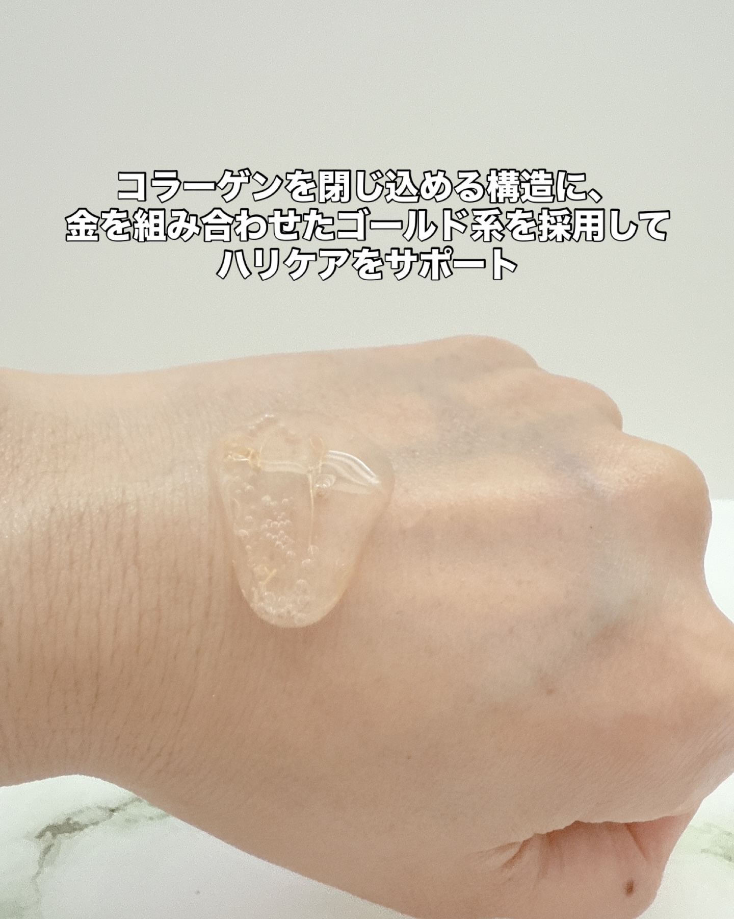 - <35mL> 水、BG、グリセリン、メチルプロパンジオール、1,2-ヘキサンジオール、ナイアシンアミド、カルボマー、トロメタン、PPG-13デシルテトラデセス-24、ヒドロキシエチルセルロース、シルクエキス、アデノシン、トチャカ、カンテン、エチルヘキシルグリセリン、EDTA-2Na、(アクリルレート/アクリル酸アルキル(C10-30))クロスポリマー、合成フルオトフロゴバイト、ベタイン、パンテノール、加水分解エラスチン、酸化チタン、赤色酸化鉄、マイカ、ジェランガム、加水分解コラーゲンエキス、ツボクサエキス、プロパンジオール、リン酸アスコルビルMg、ドクダミエキス、レシチン、アセチルグルタミン、フェノキシエタノール、カワラヨモギエキス、ヒアルロン酸Na、カプリリルグリコール、酸化スズ、金、スクワラン、水添ポリイソブテン、ベンジルグリコール、合成ヒト遺伝子組換オリゴペプチド-1、合成ヒト遺伝子組換ポリペプチド-1、合成ヒト遺伝子組換オリゴペプチド-2、合成ヒト遺伝子組換ポリペプチド-11、合成ヒト遺伝子組換オリゴペプチド-9、加水分解ムコ多糖、コラーゲン、トコフェロール、ヒアルロン酸クロスポリマーNa、加水分解ヒアルロン酸、合成ヒト遺伝子組換デカペプチド-7、合成ヒトオクタペプチド-4、合成ヒトペンタペプチド-19、ヒアルロン酸ヒドロキシプロピルトリモニウム、バルミトイルペンタペプチド-4、アセチルヘキサペプチド-8、トリペプチド-1、銅、ヒアルロン酸、ハナスゲ根エキス、アセチルヒアルロン酸Na、ラズベリーケトン