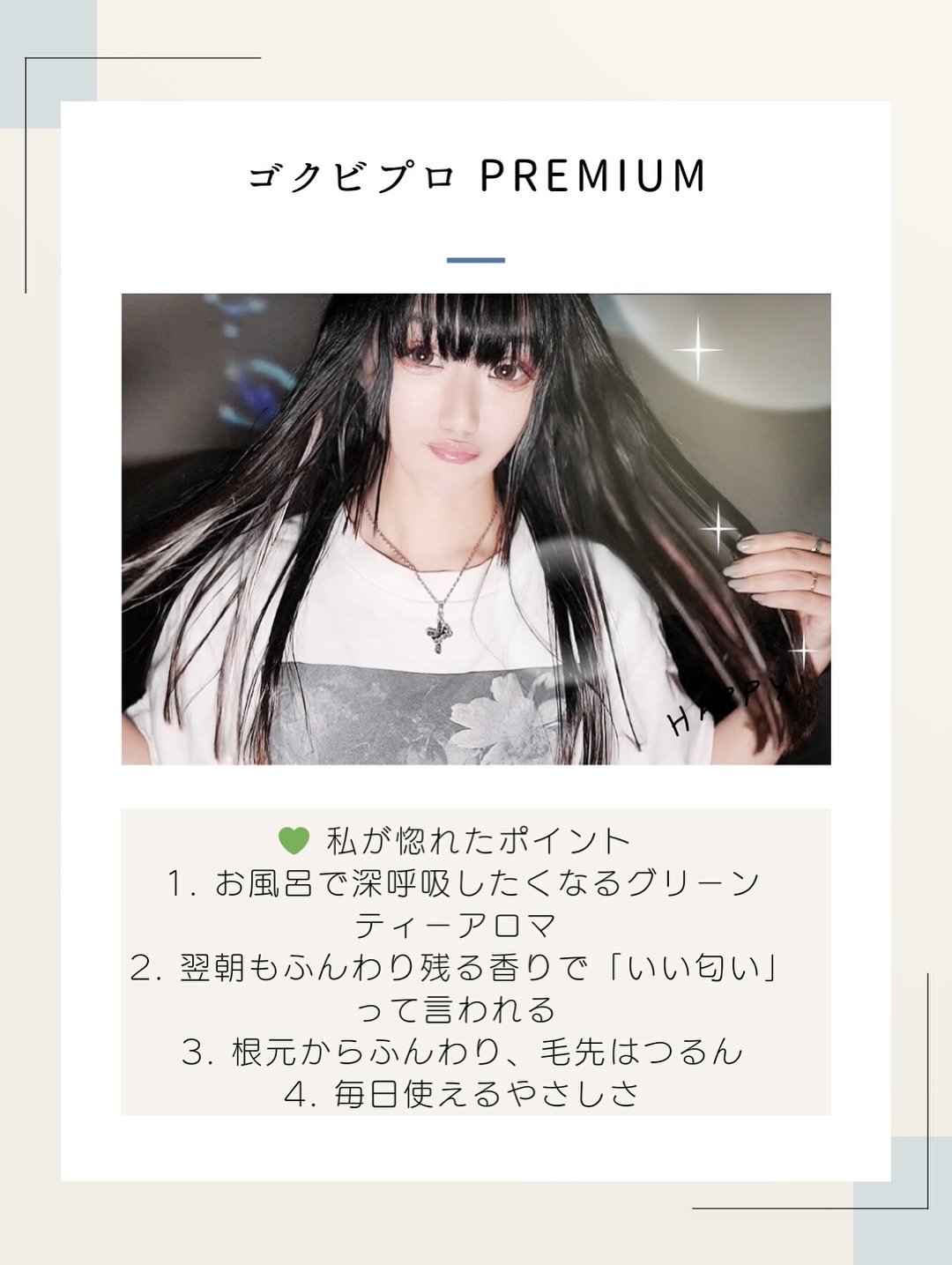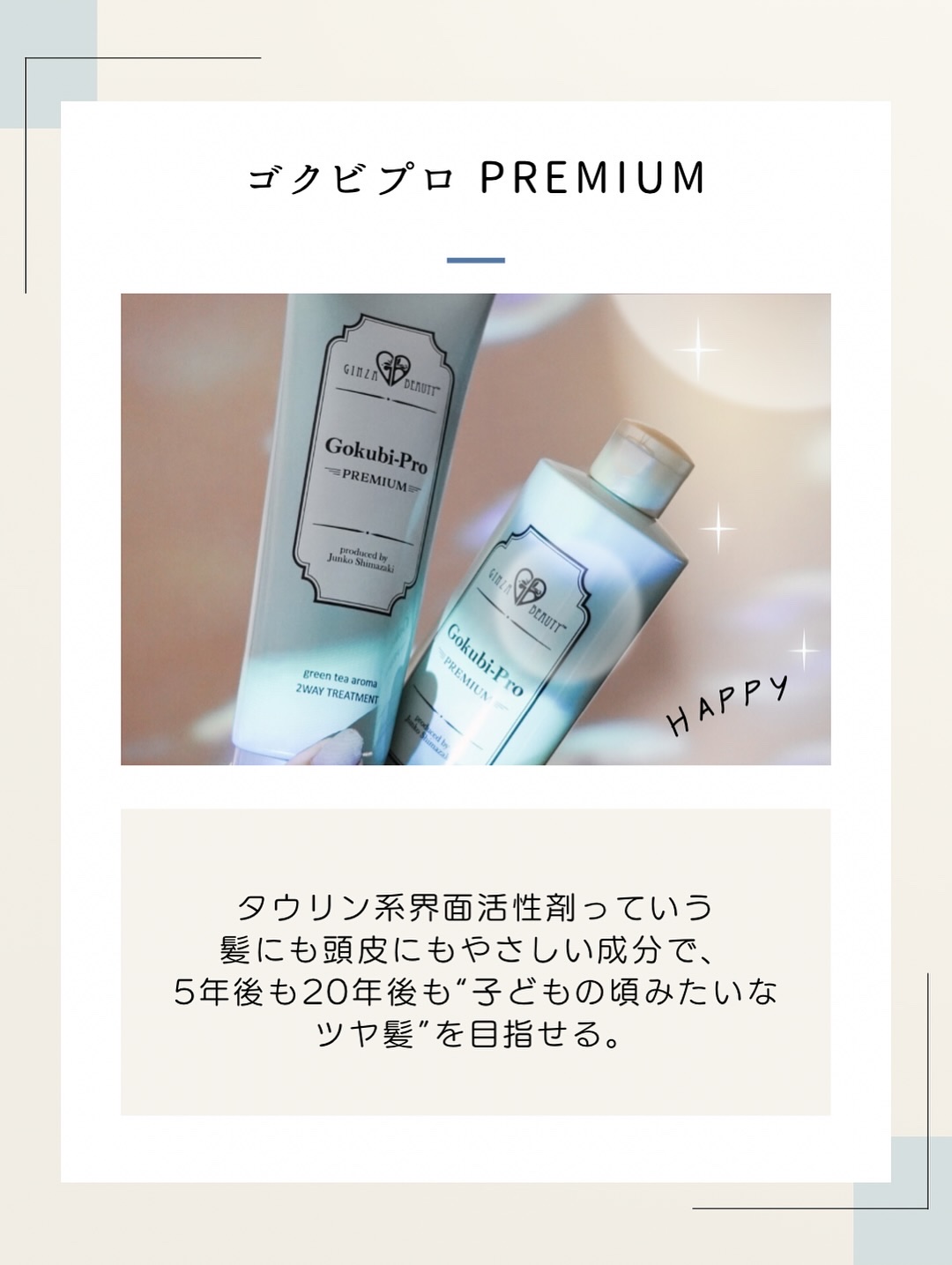 ゴクビプロPREMIUMスカルプシャンプー&2wayトリートメント□シャンプータウリン系洗浄成分でやさしく頭皮をクレンジング。乳酸やクエン酸が髪と頭皮を引き締めて健康な毛髪環境へ。泡立ちもGood◎泡立てると柔らかい泡が簡単に作れるので頭皮や...