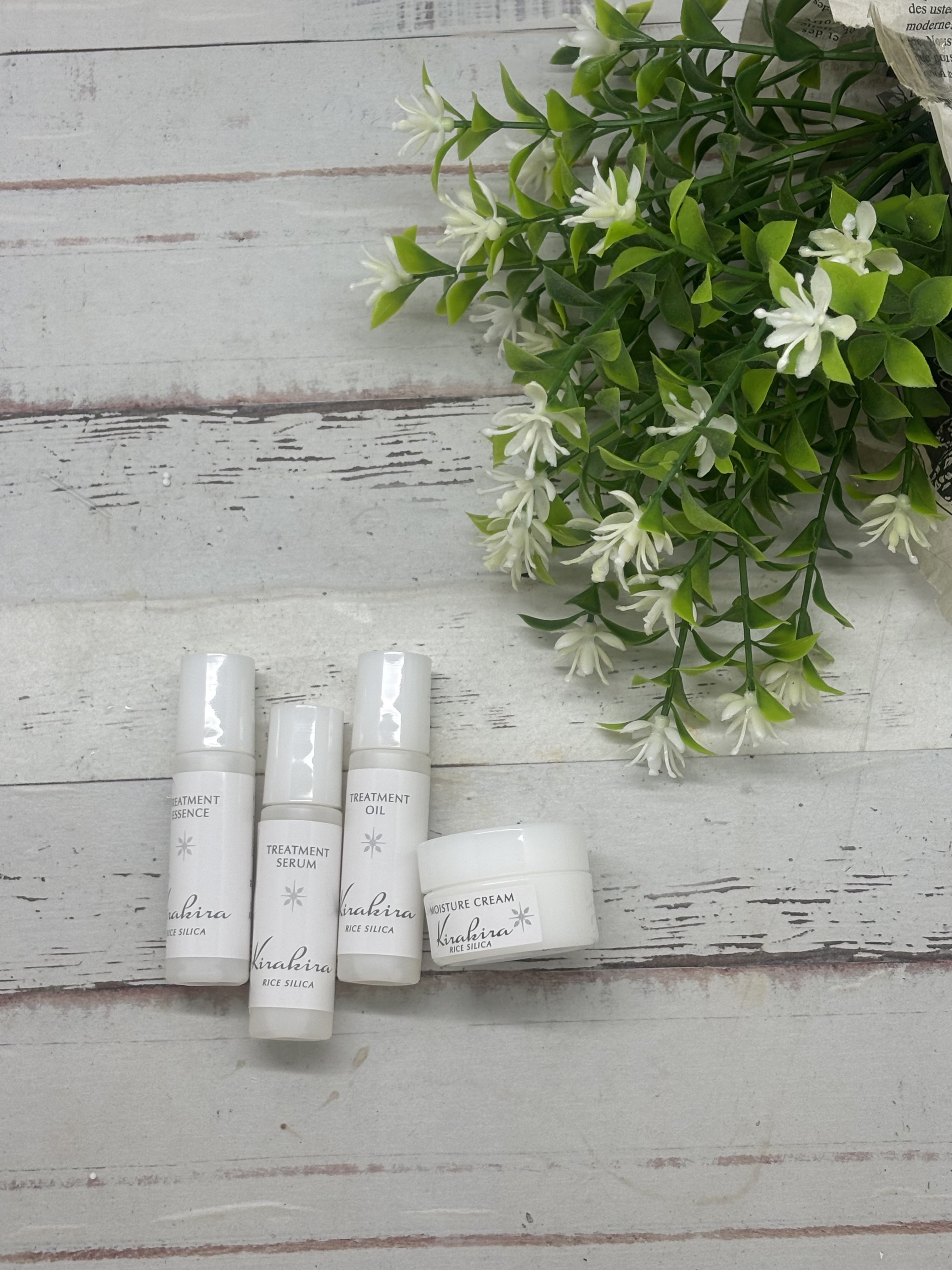 🌸KIRAKIRAトラベルセット🌸✅世界初となる、植物性シリカを配合した化粧品。トリートメントエッセンス(化粧水)トリートメントセラム(美容液)トリートメントオイル(オイル)モイスチュアクリーム(クリーム)の4点のトラベルセット。⭐️トリート...