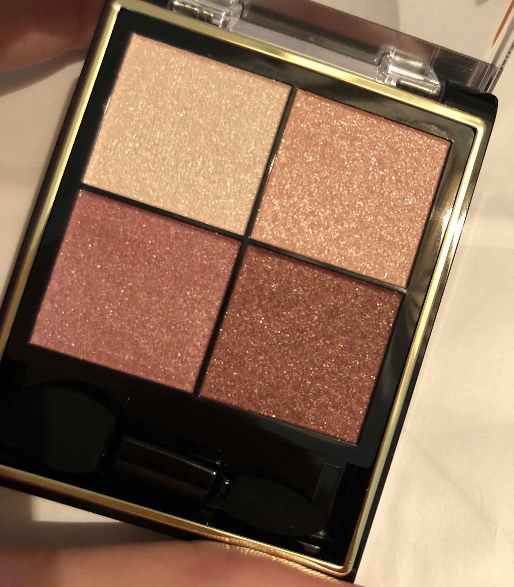 - 1.重ねてもくすまないクリアな発色。ナチュラルに溶け合う絶妙4カラー。 ツヤタイプ(左上・左下カラー):アイホール全体にぼかしたり、目尻へのポイント使いも。 ラメタイプ(右上カラー):アイホール中心や下まぶたにきらめきのアクセント。 マットタイプ(右下カラー):単色で陰影を付けたり、ツヤタイプと重ねてニュアンスをプラス。 2.うっとりするほどリッチな質感で粉飛びしないのに、軽いタッチで伸びて重ねやすいテクスチャー。 3.スクワラン(保湿)配合で目元の乾燥を防ぎます。 [PERFORMANCE] 色と質感の重ね着を楽しむ、ファッション感覚アイシャドウパレット [DESIGN] ・まぶたにひっかからない、なめらかな上質チップ ・薄型コンパクトだからポーチの中でかさばらない [QUALITY] 1.重ねてもくすまないクリアな発色 ナチュラルに溶け合う絶妙4カラー 2.パールの重ね技でまぶたに極上のツヤ感 微細多色 カラーパール 銀コーティング ガラスパール* excel GOLD-MIX処方(金パール配合)* (*右上のシャイニーカラーのみ) 3.うっとりするほどリッチな質感で粉飛び知らず!なのに、軽いタッチで伸びて重ねやすい 4.スクワラン(保湿)配合で目元の乾燥を防ぐ