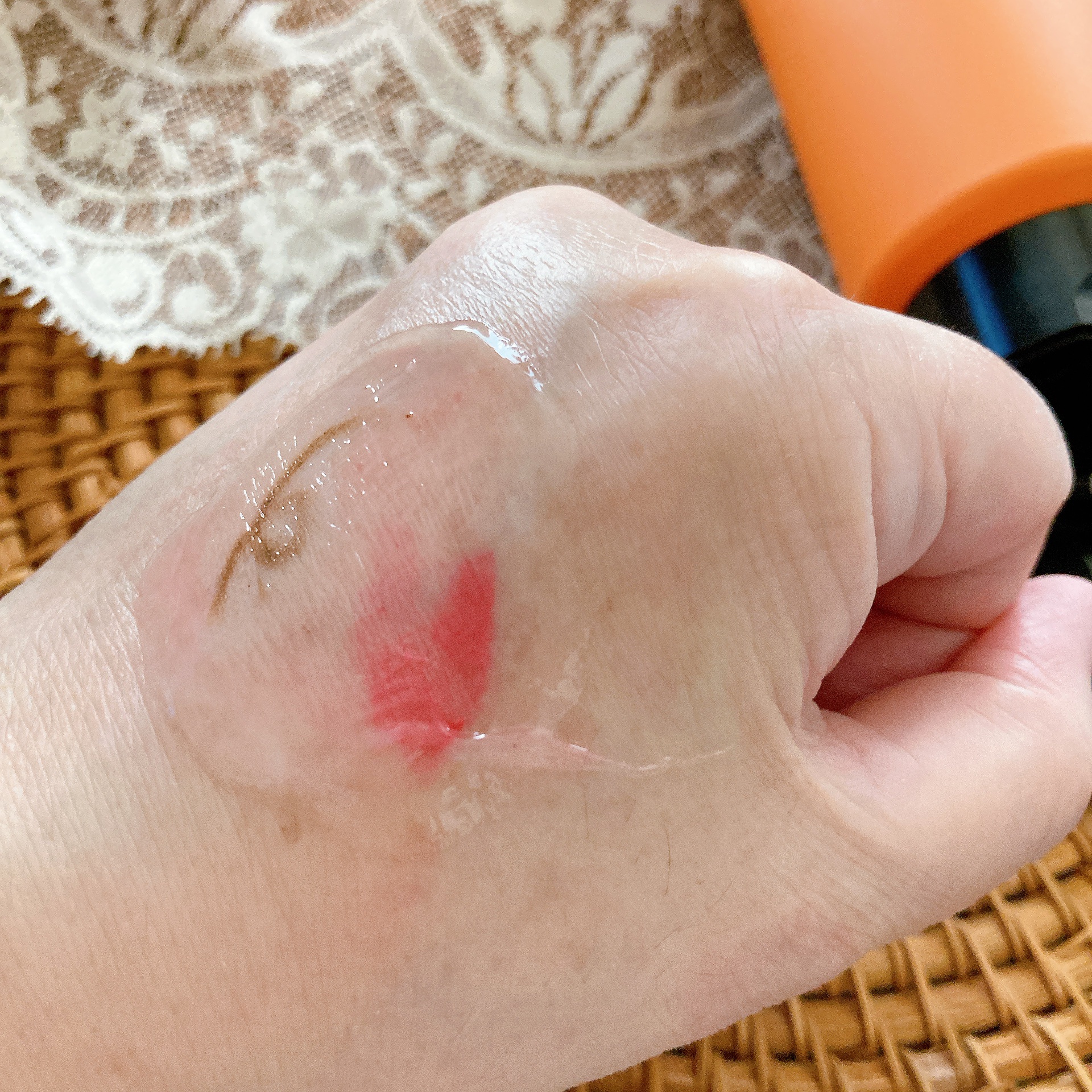 - <180g> グリセリン、PEG-8、DPG、イソステアリン酸PEG-20グリセリル、トリイソステアリン酸PEG-20グリセリル、ヤシ油脂肪酸PEG-7グリセリル、水、アスコルビルグルコシド、アスコルビルリン酸Na、テトラヘキシルデカン酸アスコルビル、パルミチン酸アスコルビルリン酸3Na、(アスコルビル/トコフェリル)リン酸K、パパイン、ドクダミエキス、アーチチョーク葉エキス、ハマメリス葉エキス、酒粕エキス、コメヌカエキス、ハトムギ種子エキス、ローズマリー葉エキス、モモ葉エキス、モモ種子エキス、メリッサ葉エキス、シャクヤク根エキス、シソ葉エキス、センチフォリアバラ花油、トウミツ、水酸化Na、BG、カルボマー、フェノキシエタノール、香料