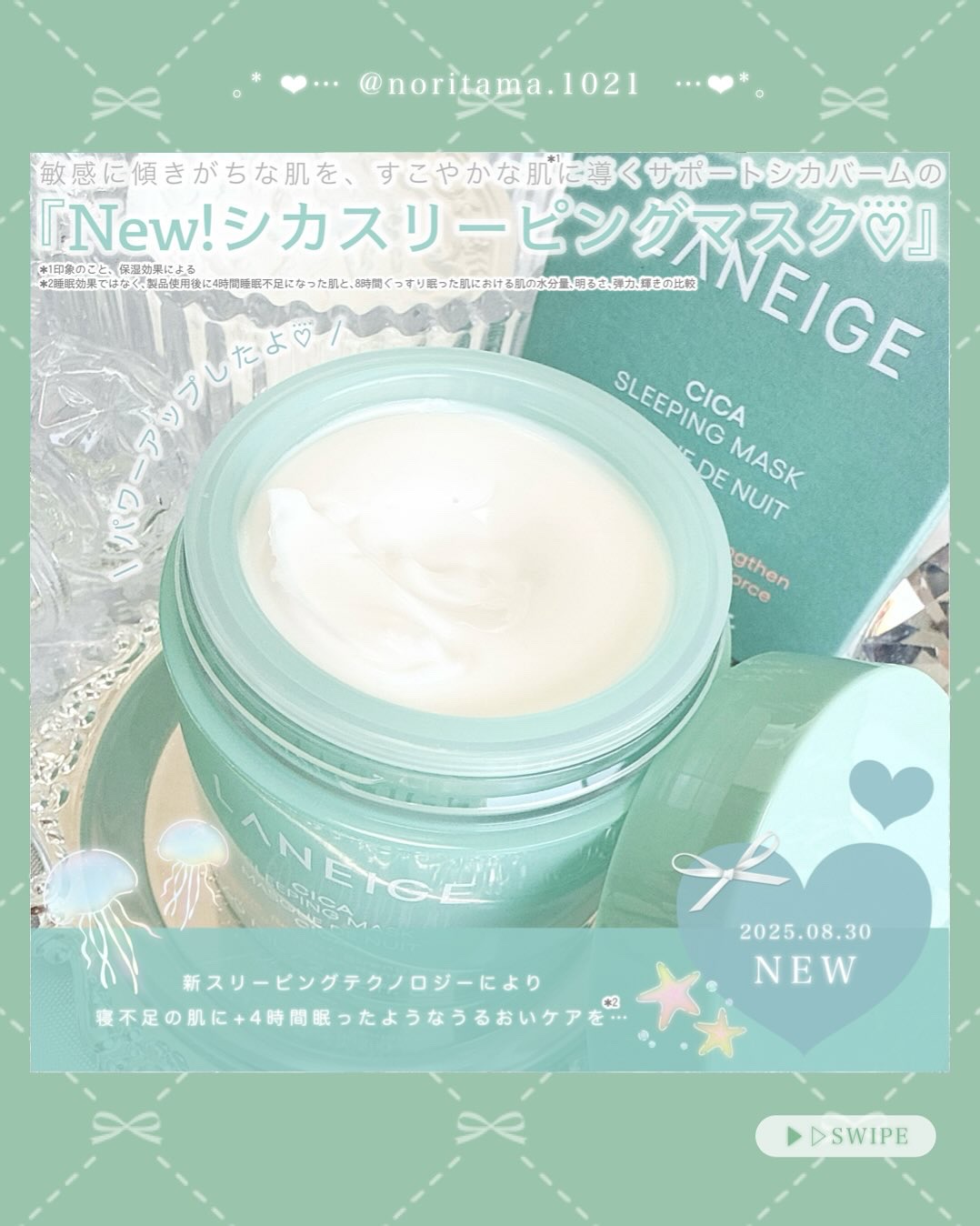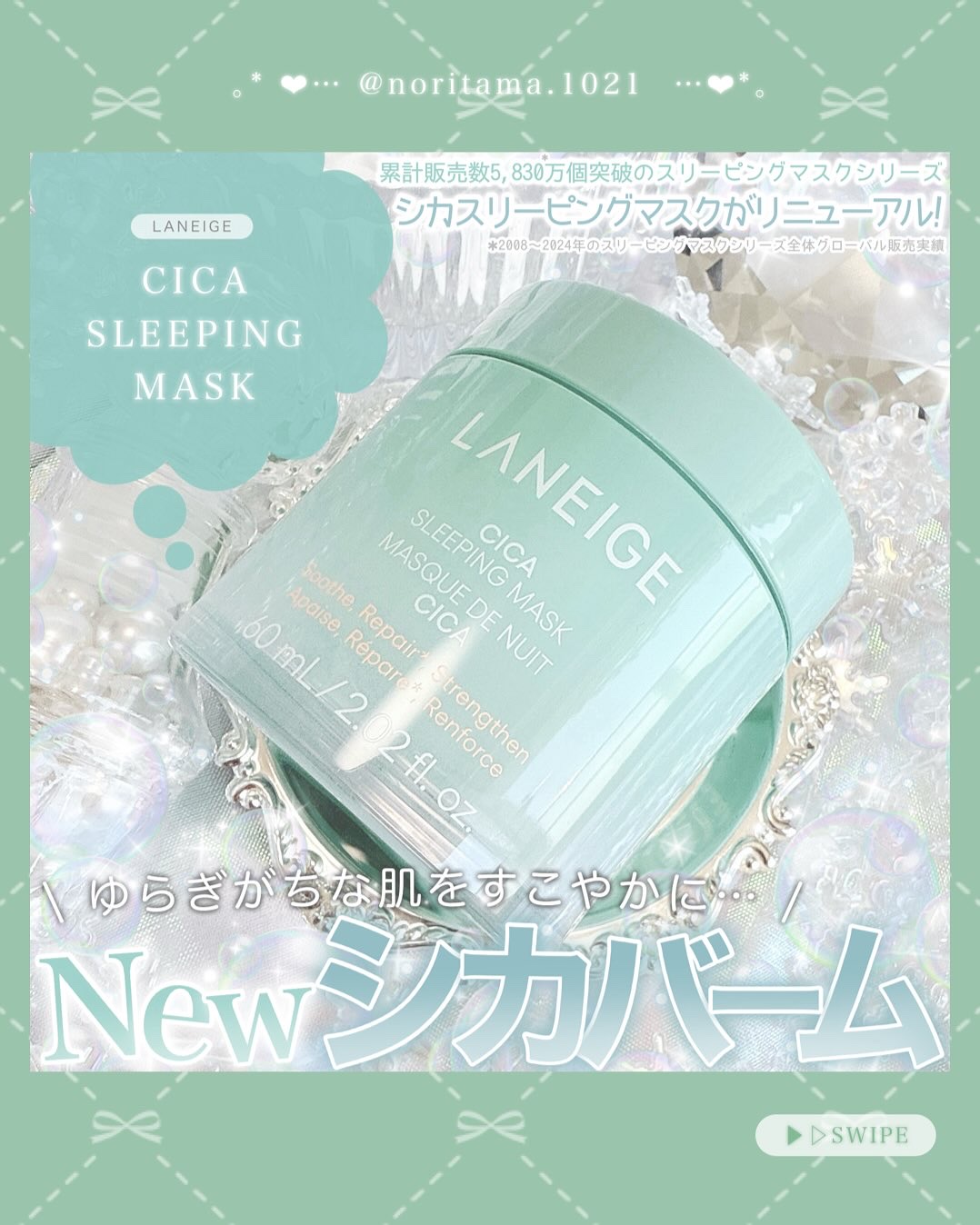 LANEIGEの名品、スリーピングマスクシリーズから『シカスリーピングマスク』が8月30日にリニューアル!ゆらぎがちな肌をすこやかに整えてくれる成分、シカリペアコンプレックス配合*1。肌のうるおい*2バリアをサポートしてくれるそうです。ゆらぎ...