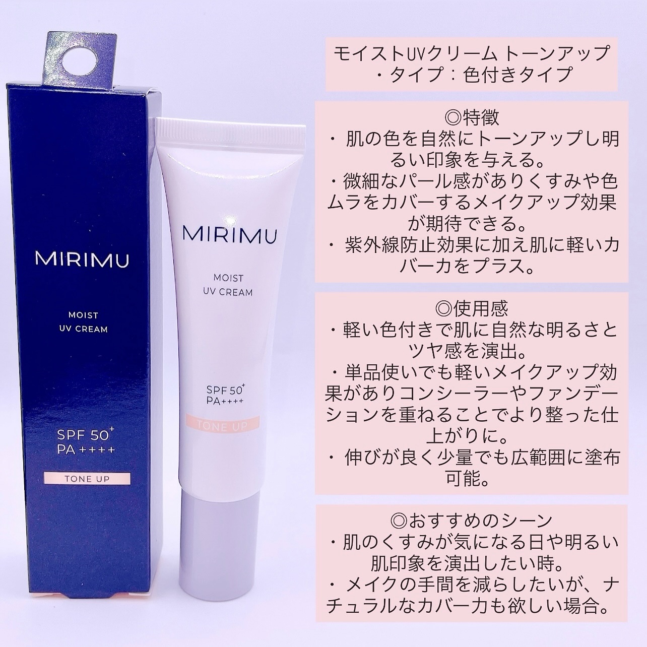 MIRIMUモイストUVクリーム☀️🤍〈エッセンス・トーンアップ〉SPF50+/PA++++の日焼け止めクリームです☀️まるで美容液のようなテクスチャーで、紫外線から肌を守ってくれます🫧白浮きしないのでベースメイクの邪魔にならない使用感になっ...