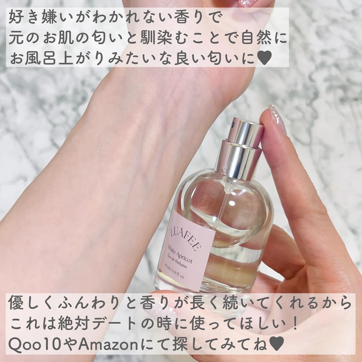 香水苦手なんだけどこの香りが大好きで今使ってる。爽やかで上品なピーチムスクの香りのホワイトアプリコット日韓1位香水‼️※見つけたら即買い❣️LUAFEEWhiteApricotEaudePerfume可愛いフォルム、甘めで可愛らしい香りであり...