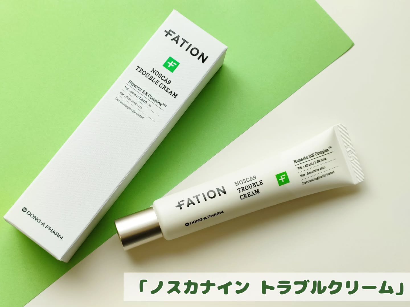 FATIONノスカナイントラブルセラム&クリーム♡トラブル肌用のスキンケアアイテム💚♡トラブルセラムスポイトタイプ。とろみのあるテクスチャー。なめらかで伸びが良い🙌なじむとさらっとしてベタつかないよ!♡トラブルクリームチューブタイプ。伸びの良...