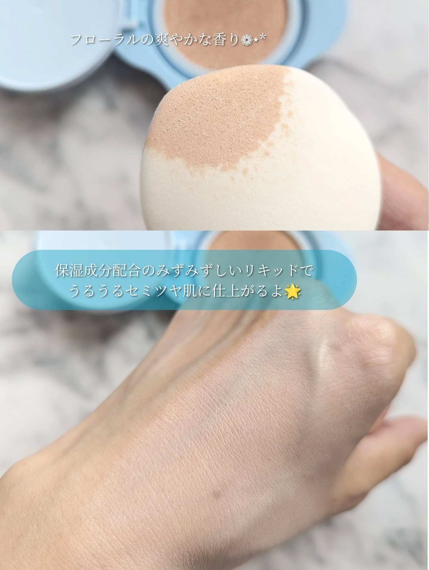 - 【ふんわり晴れごこち 映える#うぶ肌】 カラーコントロール×カバー力×セミツヤ肌を長時間キープ 1つで3役、華やかな透明感*¹のある肌に仕上げるマルチクッション <触れたくなる儚げ透明肌*¹> ブルーパウダー*²が肌のくすみや色ムラを補正。ワントーン明るい*¹透き通った肌印象に。 <ナチュラルなカバー力> 毛穴や赤みなど気になる肌悩みもふんわりカバー <まるで雲のような軽やかな付け心地> 重たさを感じさせない解放感のあるセミツヤ肌に SPF42/PA+++ <キュートなパッケージデザイン> 韓国のヘアメイクサロン「Kitts」と共同開発 アイドル級の透き通った色白肌を表現 *¹ メイクアップ効果による *² 酸化チタン