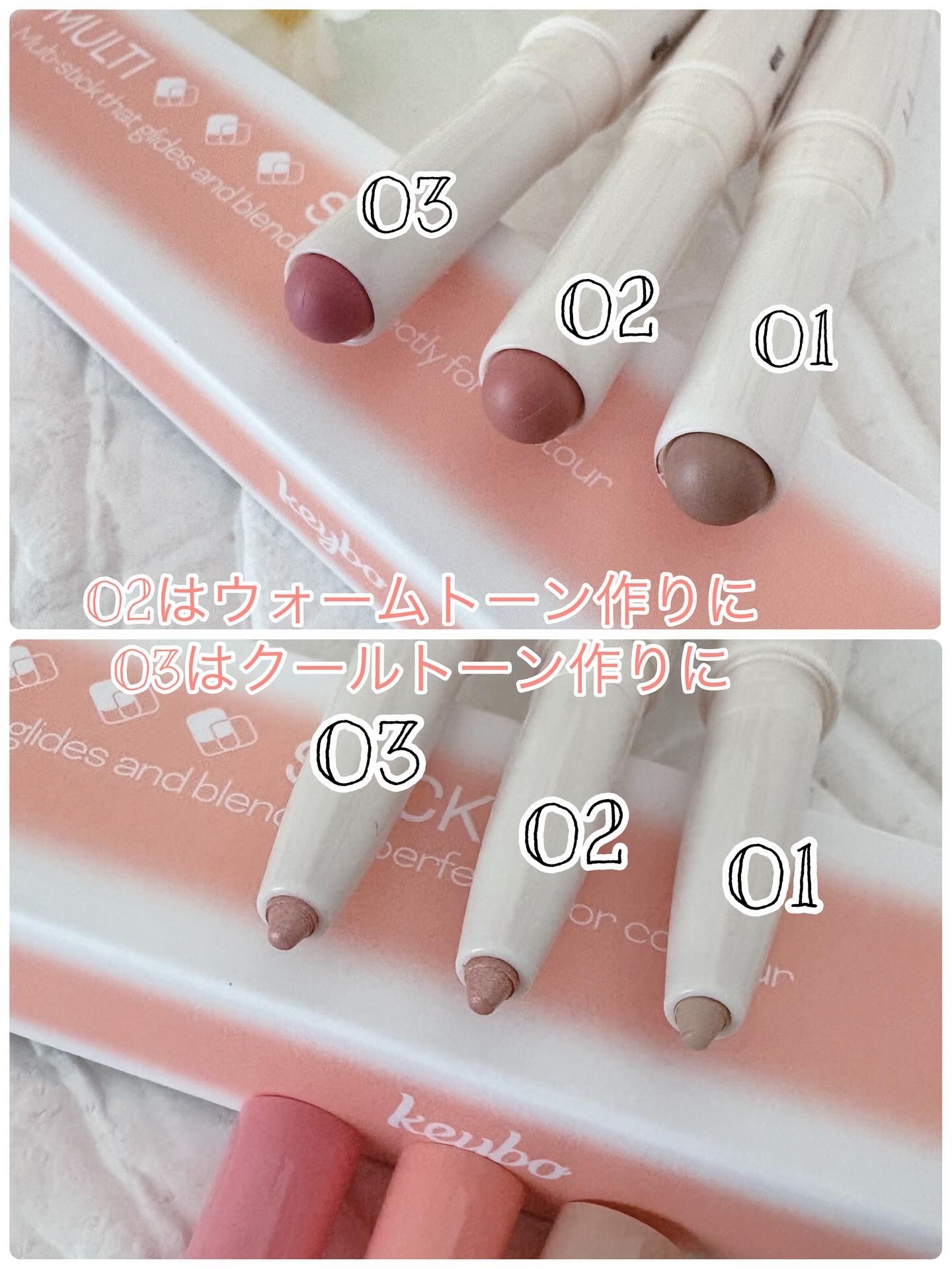 ポーチに忍ばせておくのにもピッタリなサイズ感!keyboマルチレイヤーデュオスティック✧01Linecutshadingゼロからラインを作れる!シェーディング+コンシーラーデュオ鼻筋、涙袋、フェイスライン、ほうれい線カバーに!✧02Peach...