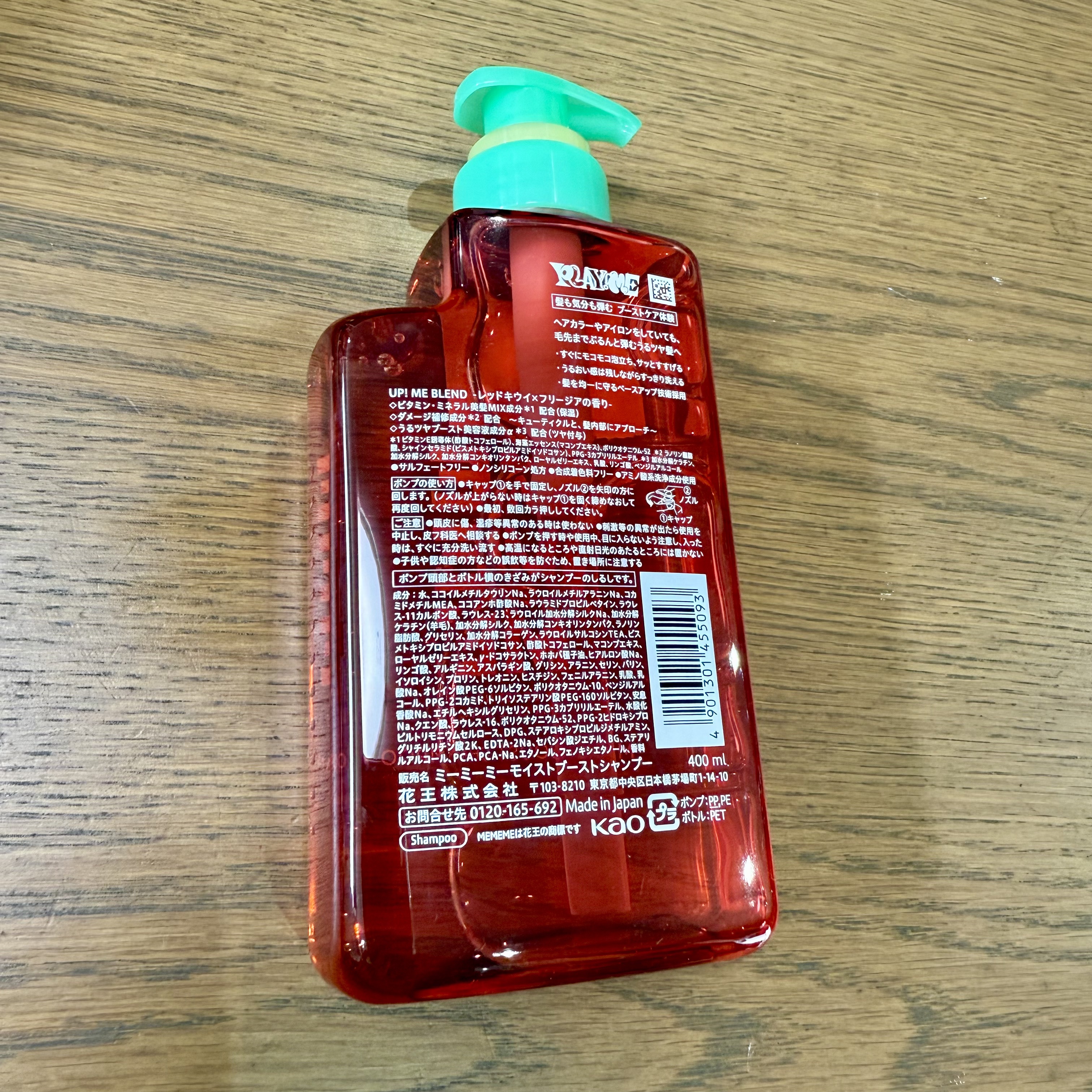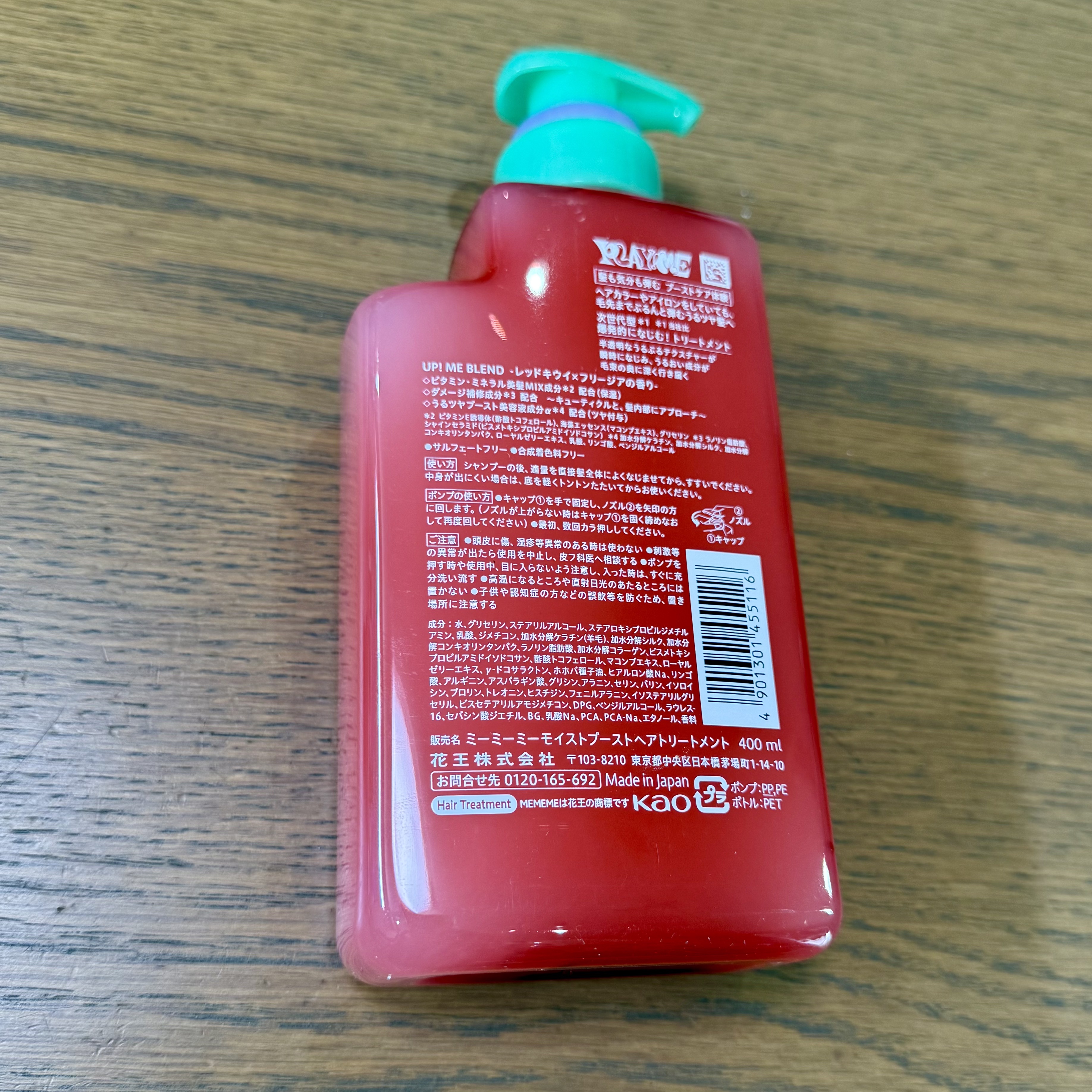 - ヘアカラーやアイロンをしていても、毛先までぷるんと弾む自信がみなぎるうるツヤ髪へ 【モイストブーストシャンプー】 ・すぐにモコモコ泡立ち、サッとすすげる! ・うるおい感は残しながらすっきり洗える ・髪を均一に守るベースアップ技術採用 【モイストブーストトリートメント】 次世代型*¹ 素早く一気になじむトリートメント。 ・半透明なうるぷるテクスチャーが瞬時になじみ、うるおい成分が毛束のすみずみまで行き届く ●サルフェートフリー ●合成着色料フリー シャンプーのみ:●ノンシリコーン処方 ●アミノ酸系洗浄成分使用*² UP! ME BLEND レッドキウイ×フリージアの香り ◇ビタミン・ミネラル美髪MIX成分*³配合(保湿) ◇うるツヤブースト美容液成分α*⁴配合(ツヤ付与) ◇ダメージ補修成分*⁵ ~キューティクルと、髪内部にアプローチ~ *1 花王内 *2 ココイルメチルタウリンNa、ラウロイルメチルアラニンNa、ラウロイルサルコシンTEA *3 ビタミンE誘導体(酢酸トコフェロール)、海藻エッセンス(マコンブエキス)、ポリクオタニウム-52(シャンプーのみ)、グリセリン(トリートメントのみ) *4 加水分解ケラチン、加水分解シルク、加水分解コンキオリンタンパク、ローヤルゼリーエキス、乳酸、リンゴ酸、ベンジルアルコール *5 ラノリン脂肪酸、シャインセラミド(ビスメトキシプロピルアミドイソドコサン)、PPG-3カプリリルエーテル(シャンプーのみ)