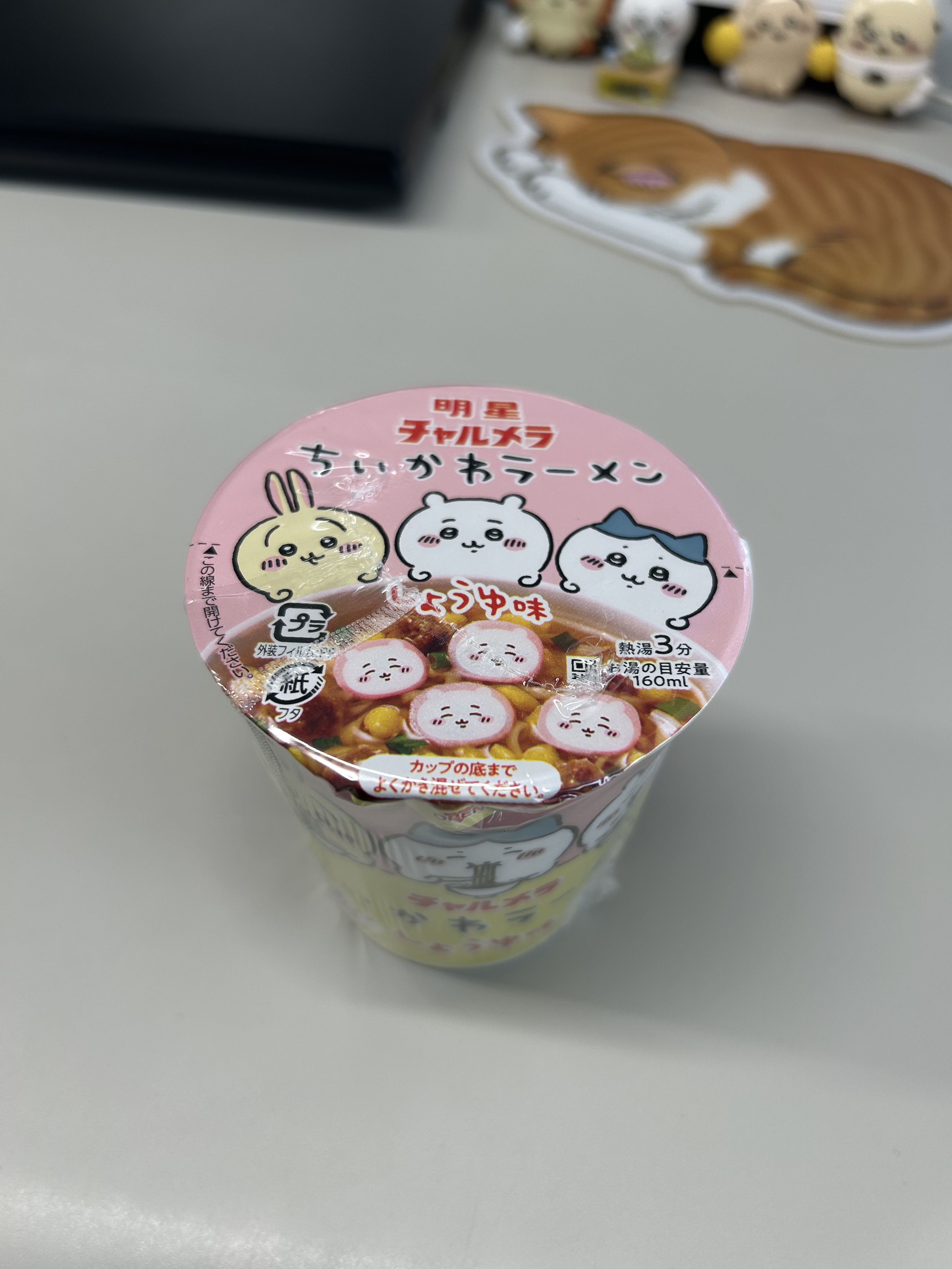 年末に食べました❣️可愛いちいかわのなるとがいっぱいでした✨ミニサイズだからちょうどいい量です💓#明星 #チャルメラ #ちいかわ#しょうゆラーメン #ミニラーメン...