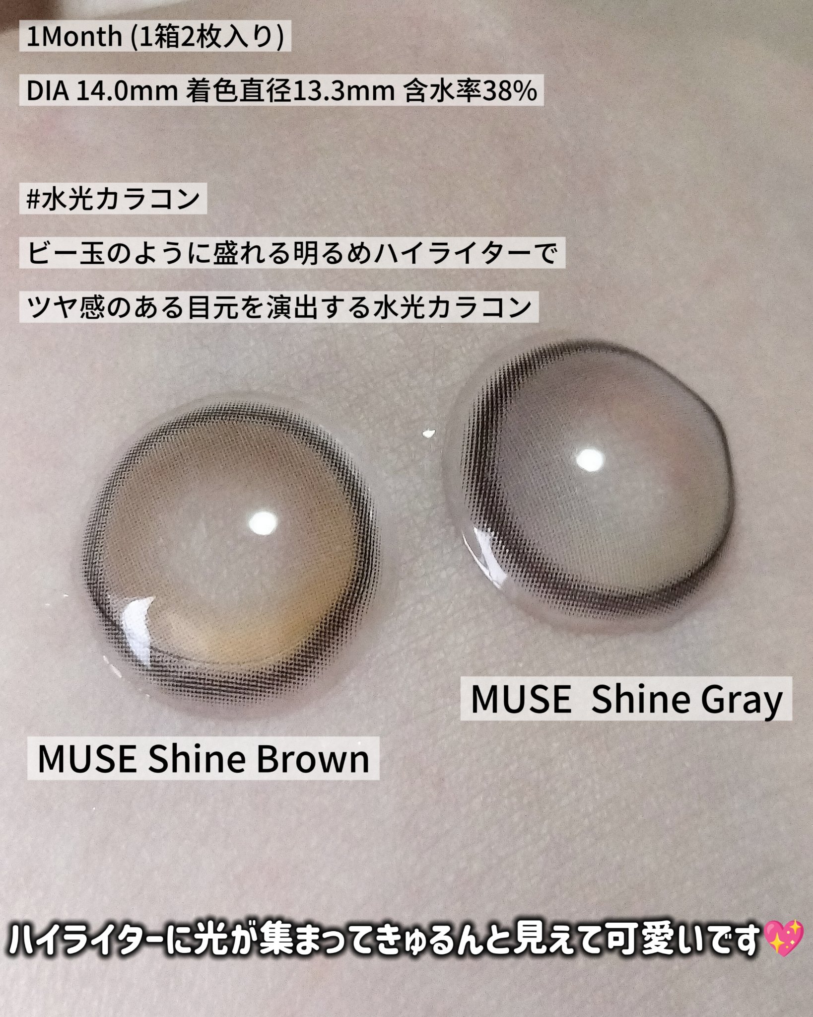 𓆸OLENS\ビー玉のように盛れる水光カラコン𓈒𓏸 /■MUSEShineGrayミューズシャイングレー■MUSEShineBrownミューズシャインブラウン《1Month(1箱2枚入り)》DIA14.0mm着色直径13.3mm 含水率38%...