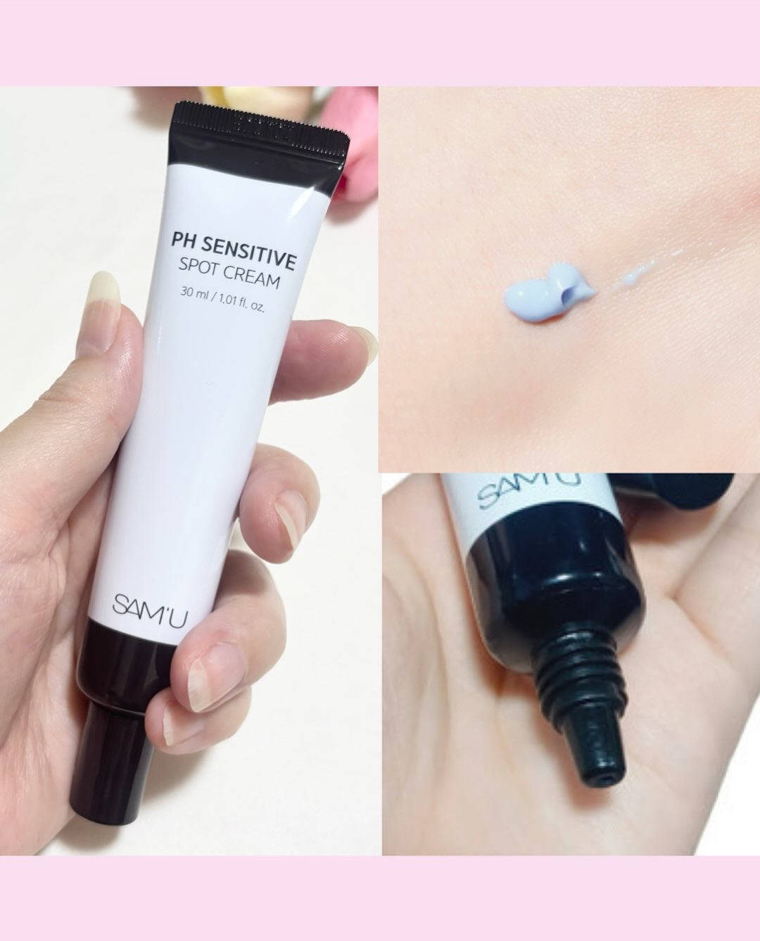 【スポットクリーム】出してびっくり!青いぞ😳🩵✔️PHSENSITIVESPOTCREAMSAM'U@sam_u_jp@samu_jp_reviewこの青さの秘密はグアイアズレン※という成分!(※整肌成分)肌の赤みが気になるところに塗ってみて...
