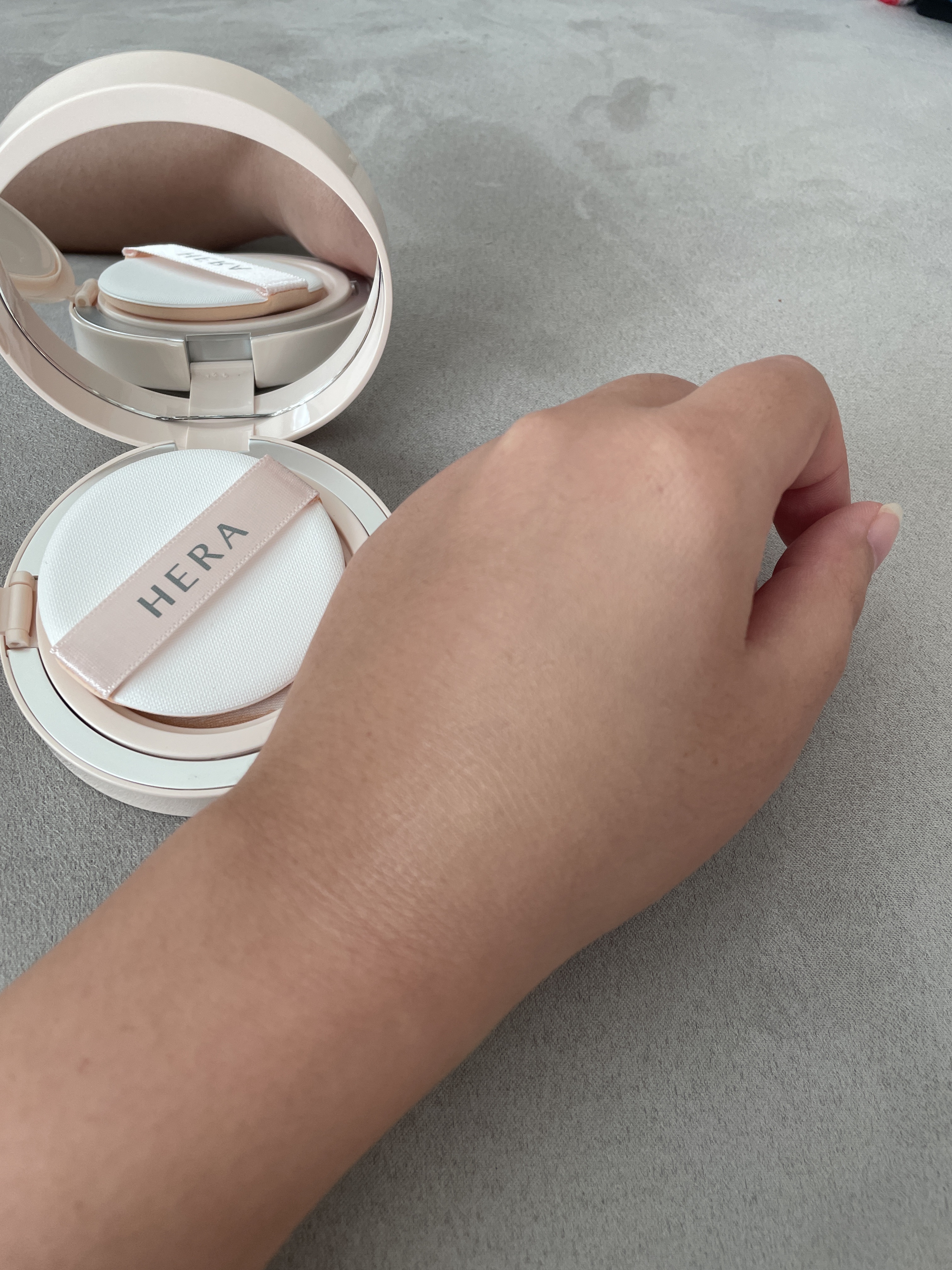 - ■光を味方につけ、しなやかに艶めくリフレクショングロウ クッションファンデーションでは初*1のコーティング技術・グロウリフレクサーTMを採用。 明るい陽の光が差し込むように、どの角度から見ても美しく艶めく立体感を叶えます。 HERA独自のグロウパウダー*2を配合し、透き通るようにエレガントで繊細なグロウ感を纏った上品な素肌感を演出。 時間が経っても、つけたての美しい艶肌が一日中つづきます。 ■美しい艶めきをキープする“ハイブリッドメッシュTM” スポンジ+メッシュのダブルフィルター構造の“ハイブリッドメッシュTM”を採用した新感覚クッション。 ダブル構造でみずみずしいファンデーションを薄く均一に肌にのせられるよう設計。 軽やかなテクスチャーがより繊細に、溶け込むように肌になじみ、美しい艶めきとメイクしたての仕上がりを長時間キープします。 ■24時間*3うるおいがつづくスキンケアフォーミュラ ペプチドを含む3種のカメリアコンプレックス*4配合で、キメがうるおいで満たされたようなしっとりとした付け心地。 さらに、ナイアシンアミド*5とビタミンC*6配合で肌にハリを与え、内側から艶めきがあふれるような透明感*7のある肌に導きます。 *1 アモーレパシフィック社において *2 セルロース *3 当社調べ、効果に個人差があります *4 ツバキ種子油、ツバキ種子エキス、ツバキ花エキス(保湿成分) *5 保湿成分 *6 アスコルビン酸(保湿成分) *7 うるおいによる