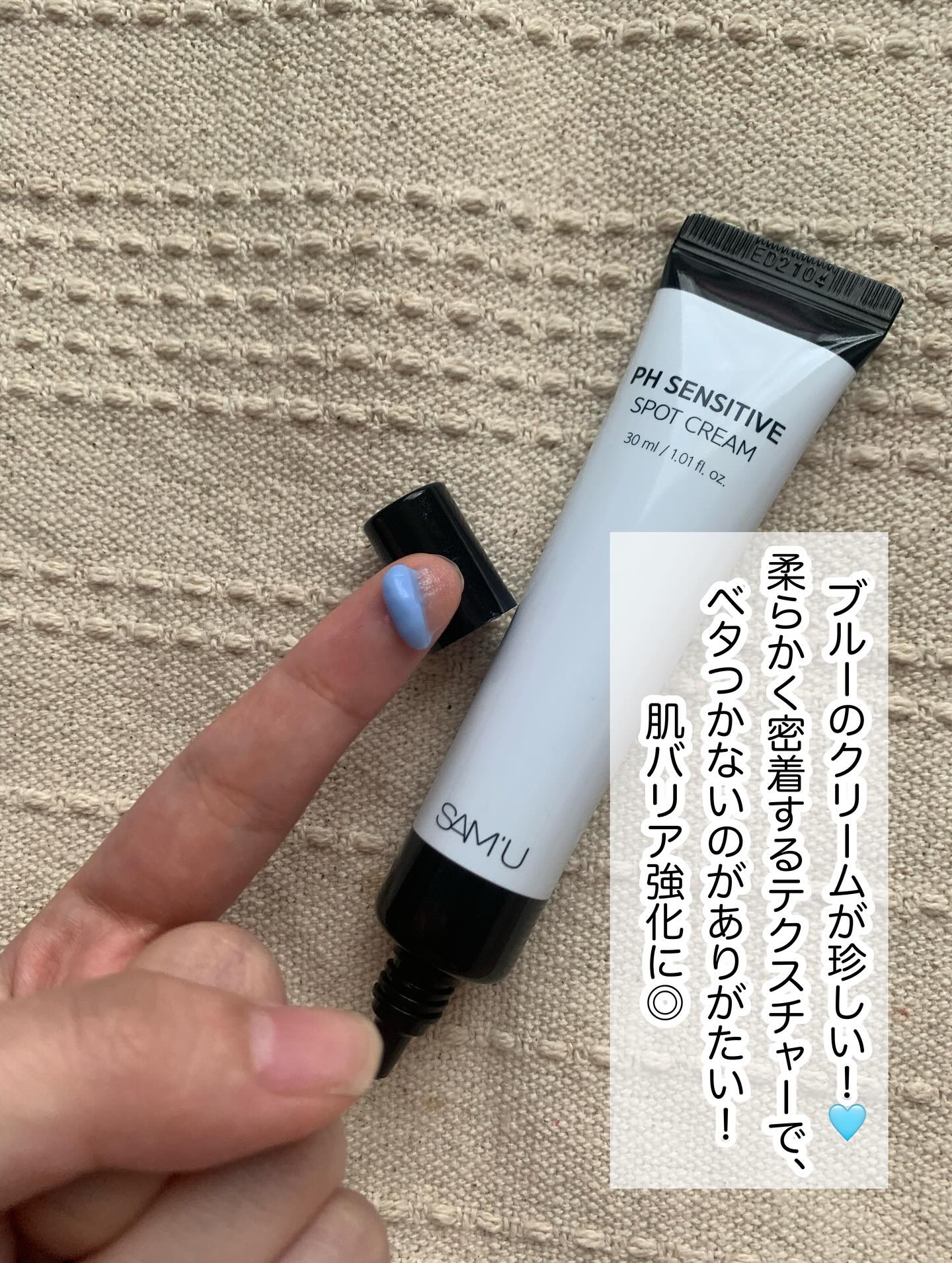 【スポットクリーム】出してびっくり!青いぞ😳🩵✔️PHSENSITIVESPOTCREAMSAM'U@sam_u_jp@samu_jp_reviewこの青さの秘密はグアイアズレン※という成分!(※整肌成分)肌の赤みが気になるところに塗ってみて...