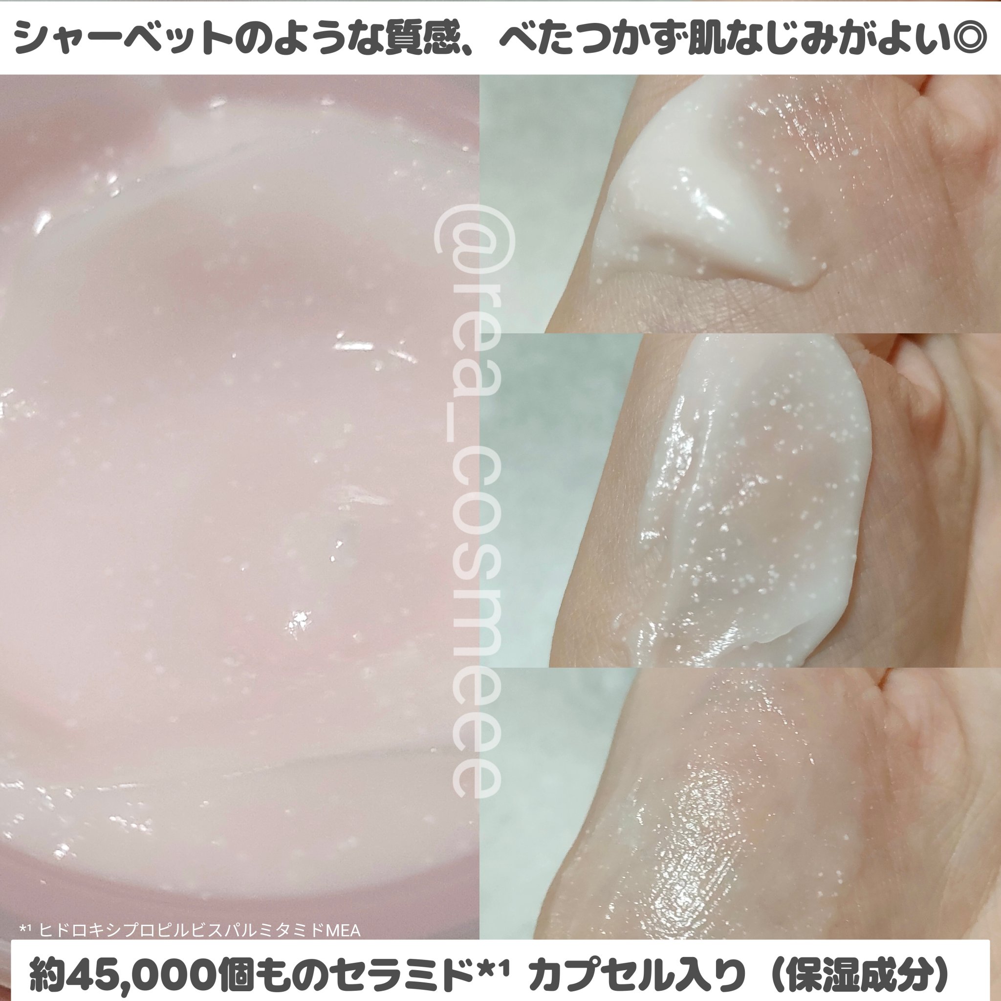 | シャリッ・ふわっとしたちょっと特徴的な シャーベットのようなテクスチャ。たっぷり塗ってもベタつきにくい🙌 | 詳細を見る | ||