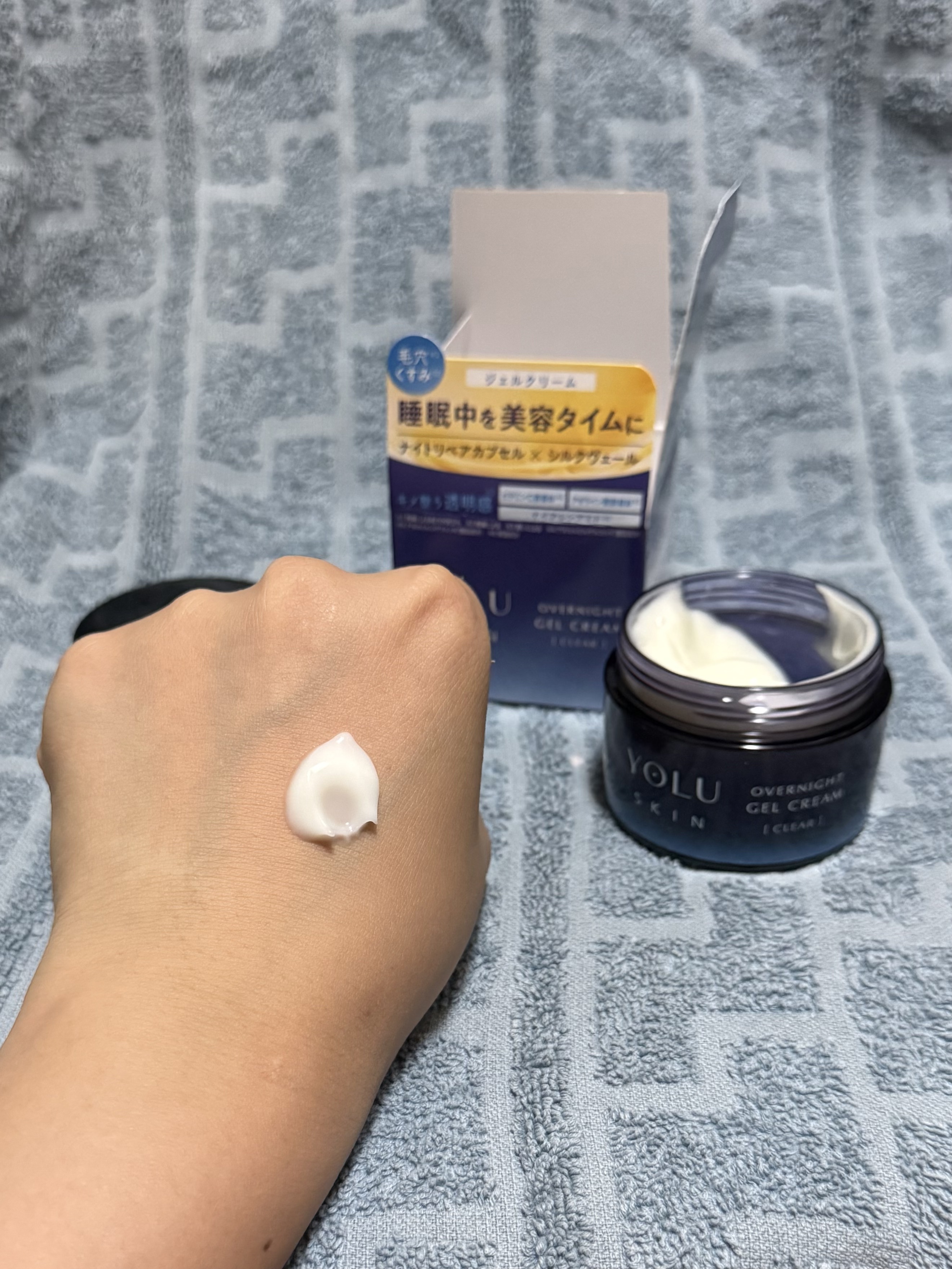 YOLUヨルスキンオーバーナイトジェルクリームクリア夜用のジェルクリームって、重たく感じることもあるけど、これは軽やかで使いやすい!透明でぷるっとしたテクスチャーが肌にスーッとなじんで、塗った直後からうるおいの膜に包まれる感じ。朝まで乾燥しづ...
