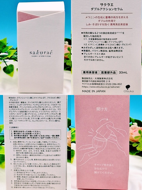 .サクラエ ダブルアクションセラム.大塚製薬から誕生した薬用美白美容液.ᐟ.ᐟ気になっていて購入してみましたꉂ☻ᵎᵎᵎ.大塚製薬のダブルのシミ対策*1美容液𓈒𓂂𓏸1本でメラニンを抑制*2・排出*3する日本初*4のダブル美白*5美容液𓍯.なめら...