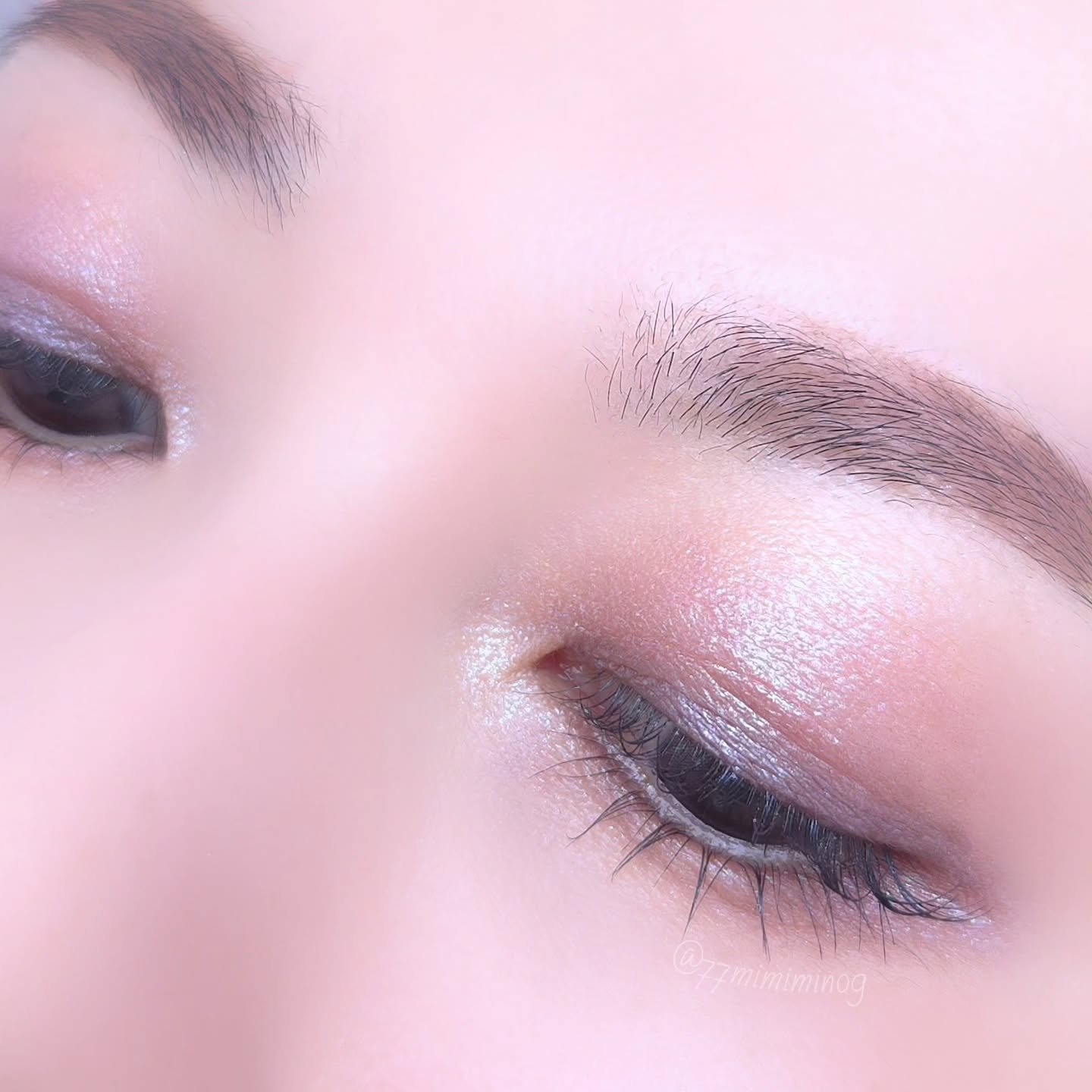 RMKのアイシャドウはこれがデビュー。こんなんブルベホイホイじゃん…。かわいすぎて即予約電話したわ🫠🩷 青みピンクに透明感爆発パープルにキラキララメ。締め色はグレージュっぽいブラウン。ブルベ大歓喜。 発色は調整しやすい。ピンクも見た目はビビッドだけど、ふんわり色づくので、好みの濃さにできるよ。