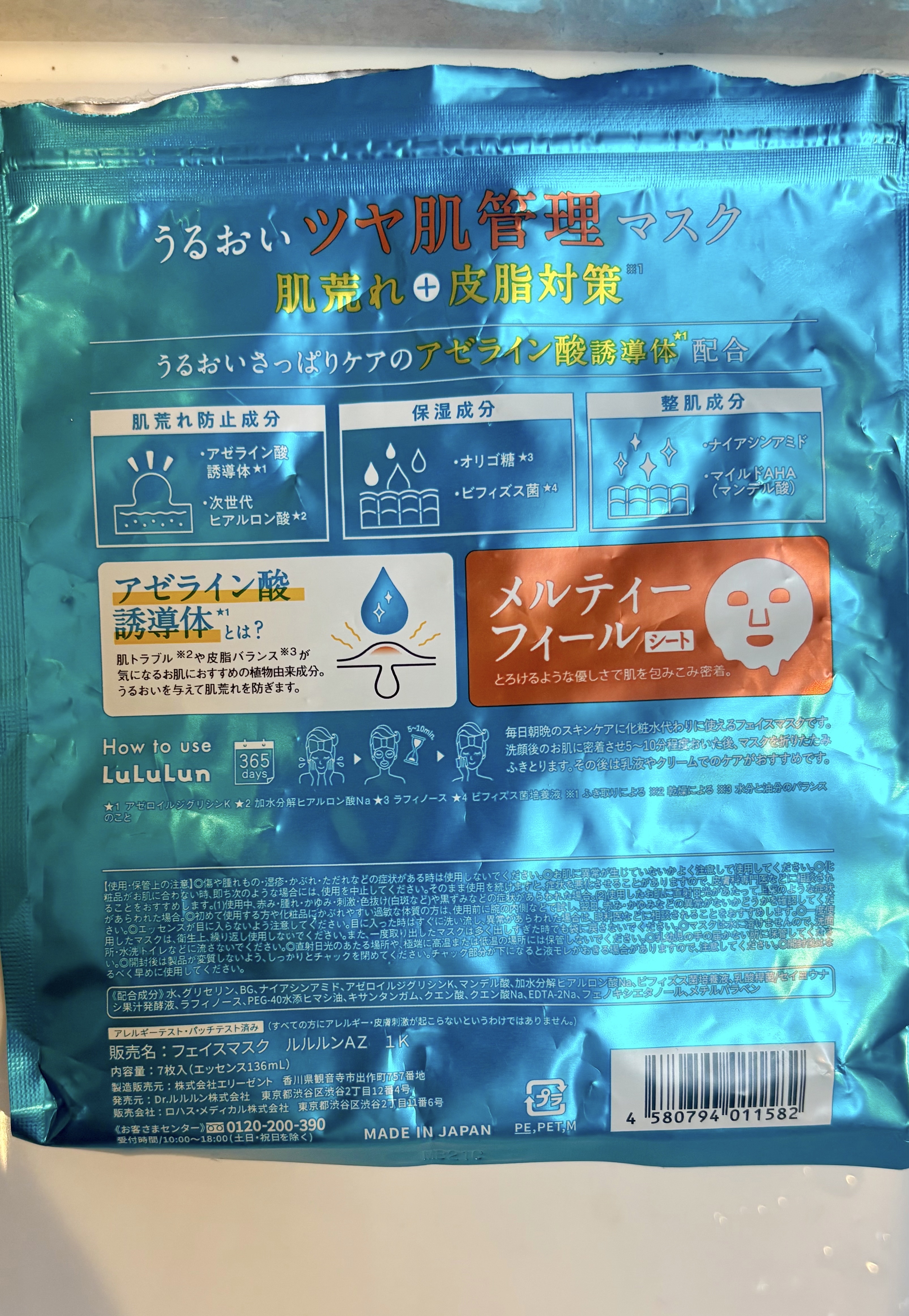- 肌荒れ・皮脂ケア※1と健やかな肌の土台※2美容を叶える、アゼライン酸誘導体*1配合のうるおいツヤ肌管理マスクです。 肌荒れや肌の赤み、毛穴目立ちが気になる方に。 アゼライン酸*1×ナイアシンアミド*2+次世代ヒアルロン酸*3配合で、肌荒れをケアし、角質層をみずみずしいうるおいで満たします。 さらに肌表面でゆっくりと働くマイルドAHA*4が、古い角質をやわらげ、キメを整えることで、つるんとツヤめく素肌へ導きます。 シートはとろけるように肌に密着するメルティーフィールシートを採用。 シートが最も柔らかく感じられる液量を研究し、まるで水の層に包まれているような心地よさを実現しています。 (※1 ふき取りによる ※2 角質層のこと *1 肌荒れ防止成分 アゼロイルジグリシンK *2 整肌成分 *3 肌荒れ防止成分 加水分解ヒアルロン酸Na *4 整肌成分 マンデル酸)