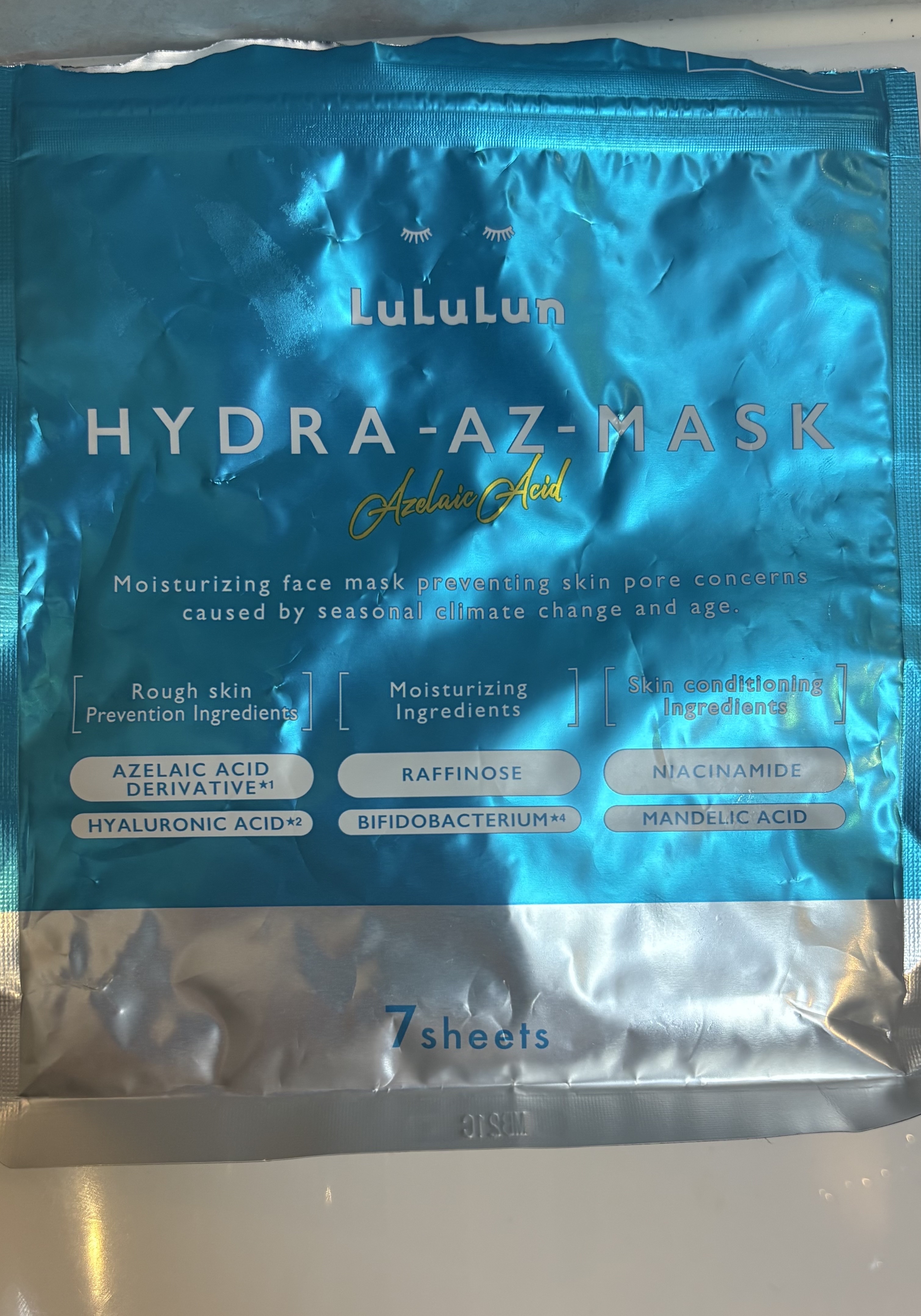 こちらのマスクはアゼライン酸誘導体が毛穴目立ち、肌荒れを防いでくれるそう🎶 ヒアルロン酸やナイアシンアミド配合で気になる乾燥やハリの無さにもアプローチ! 化粧水代わりに使えるタイプのマスクで毎日使っても良いのが嬉しいところ☺️ さっぱりした質感でいつ使ってもしつこくない絶妙な保湿バランスです🌿 欲を言えば、鼻周りとおでこのシートがもう少し大きくなると嬉しいなあ……余ってる耳付近のシートが移動すれば……🤫