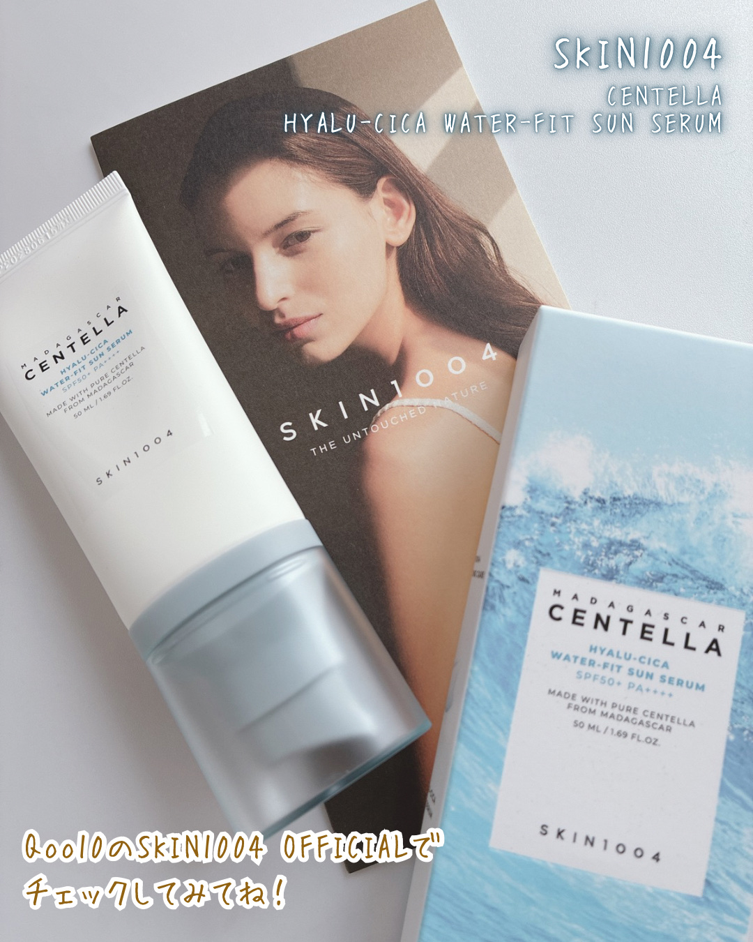SKIN1004MADAGASCARCENTELLAHYALU-CICAWATER-FITSUNSERUMSPF50+PA++++もうこれはもはや日焼け止めなの?ってくらい軽くて付け心地のいい日焼け止め😍水々しいテクスチャでベタつかず、キシキ...