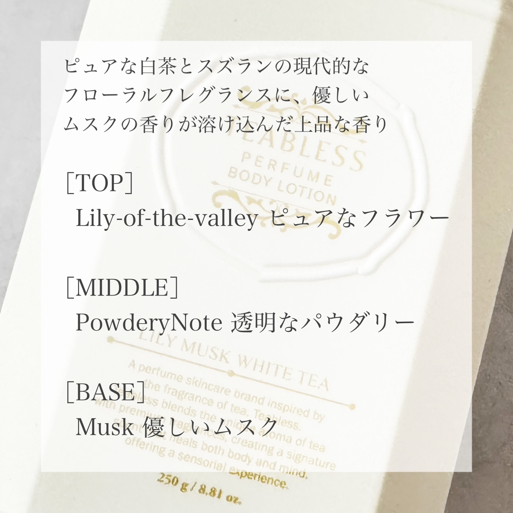 商品詳細情報TEABLESS パフュームボディローション リリィムスクホワイトティー