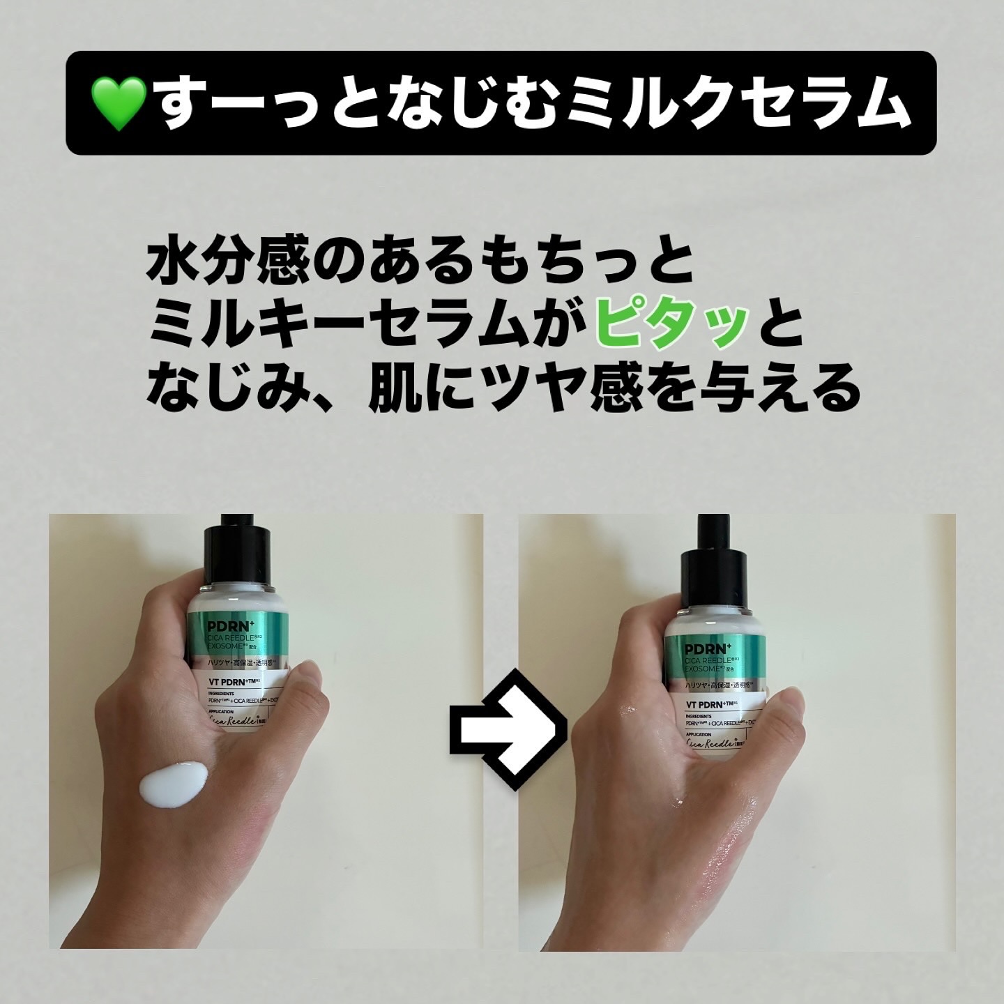 - ハリのない肌コンディションを整える スペシャルPDRN+™×美容針×エクソソーム(全て整肌)配合でハリケア 水分感のあるもちっとミルキーセラムがピタッとなじみ、肌にツヤ感を与える。 さらにツヤ美容成分をプラス! ・ナイアシンアミド: ツヤ肌ケア、保湿 ・セラミド : 肌バリアサポート、乾燥・肌荒れ防止 洗顔後、適量を取り、肌のキメに沿ってやさしくなじませます。