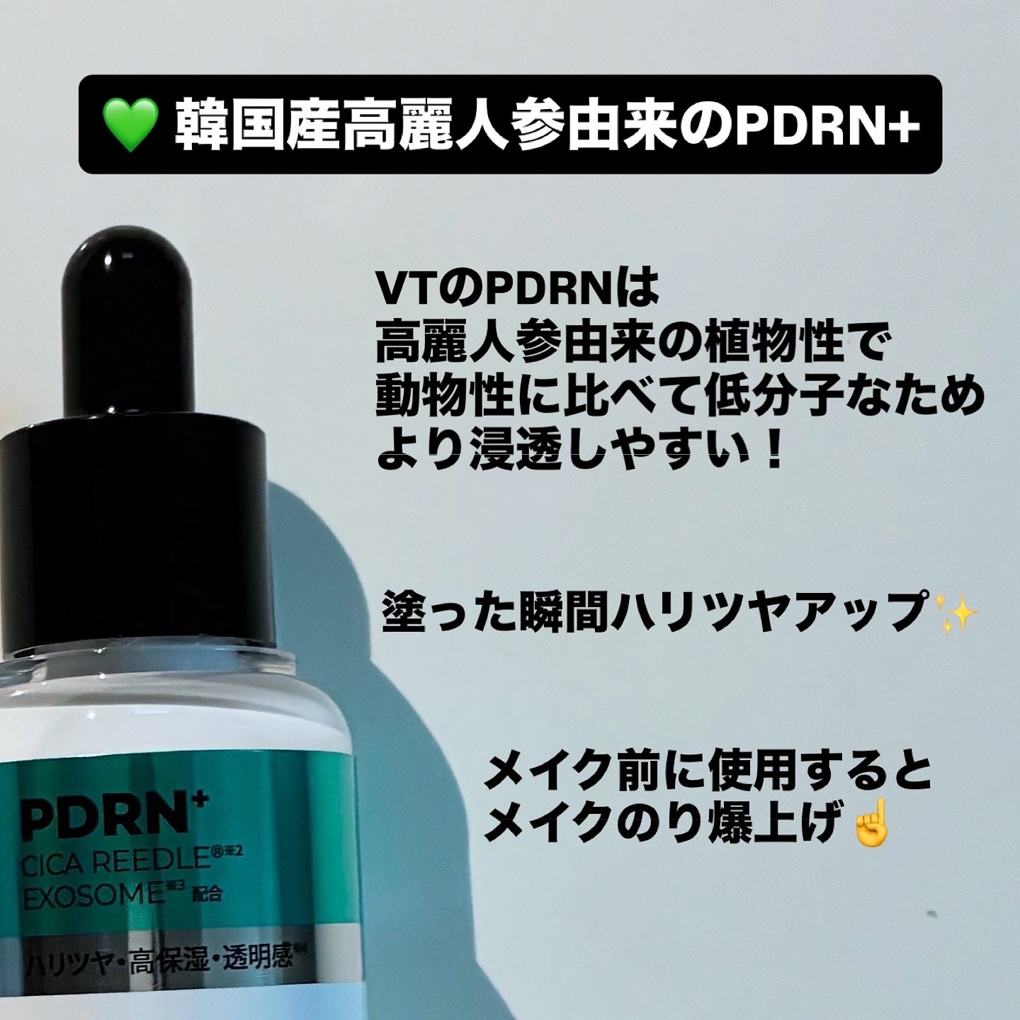 VTリードルSPDRN+セラム肌荒れ・ハリツヤ高麗人参由来の植物性PDRN×リードルショット化粧水後に使用するよ白色でとろみがかっているテクスチャーとろみがあるから多少は浸透しにくいけど保湿力満足!PDRNカプセルクリーム100ゆらぎ・ハリツ...