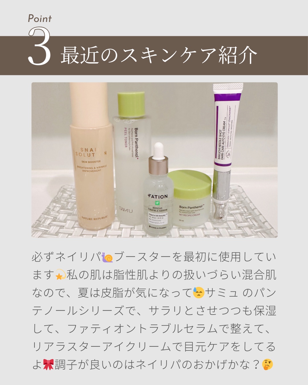 ネリちゃんズとしての3回目の投稿です🤍NATUREREPUBLICスネイルソリューションスキンブースタースキンケアのファーストステップに使う事で次に使うスキンケアの馴染みをサポートしてくれる導入美容液糸引くようなとろみがあるのに肌に馴染むとベ...