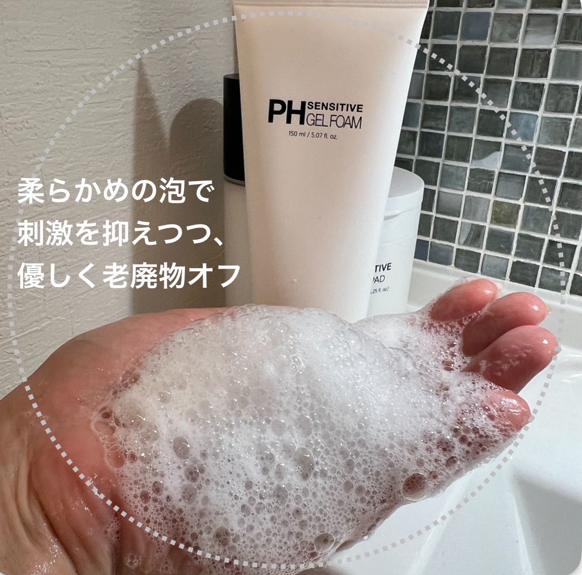 \ジェルフォーム?想像と違ったけど、むしろ良い/SAM'UPHセンシティブジェルフォームパッケージに“ジェルフォーム”って書いてあるから透明なジェルかと思っていたら、白いペースト状の洗顔料でびっくり!▶︎ふわふわのきめ細かい泡が作れる泡立てネ...