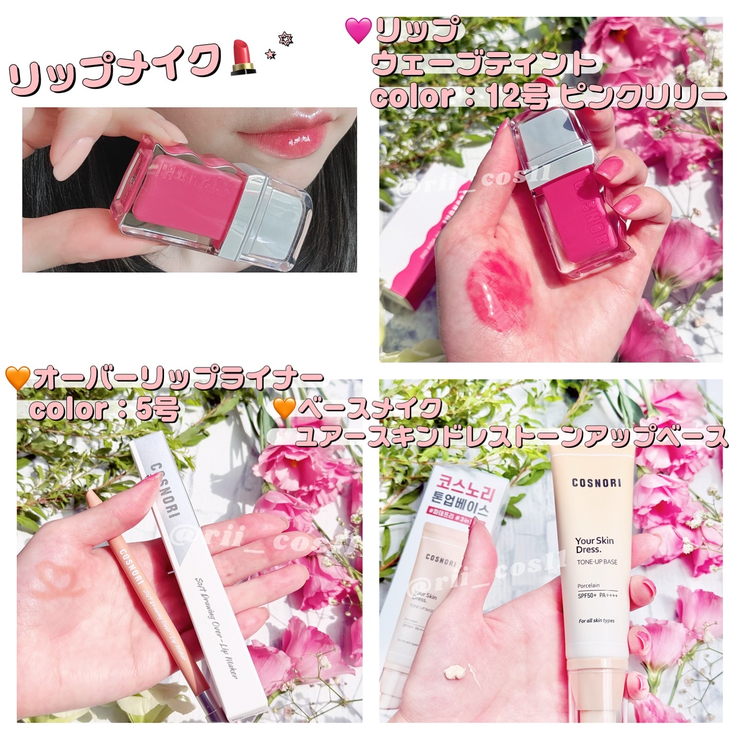COSNORI💫私だけのコスノリメイクレシピ紹介🎀🪄・ユアースキンドレストーンアップベース・マイモーメントアイパレット・パーフェクトセッティングマスカラウォータープルーフLong&Curl・オーバーリップライナー・ウェーブティントを使用してメ...