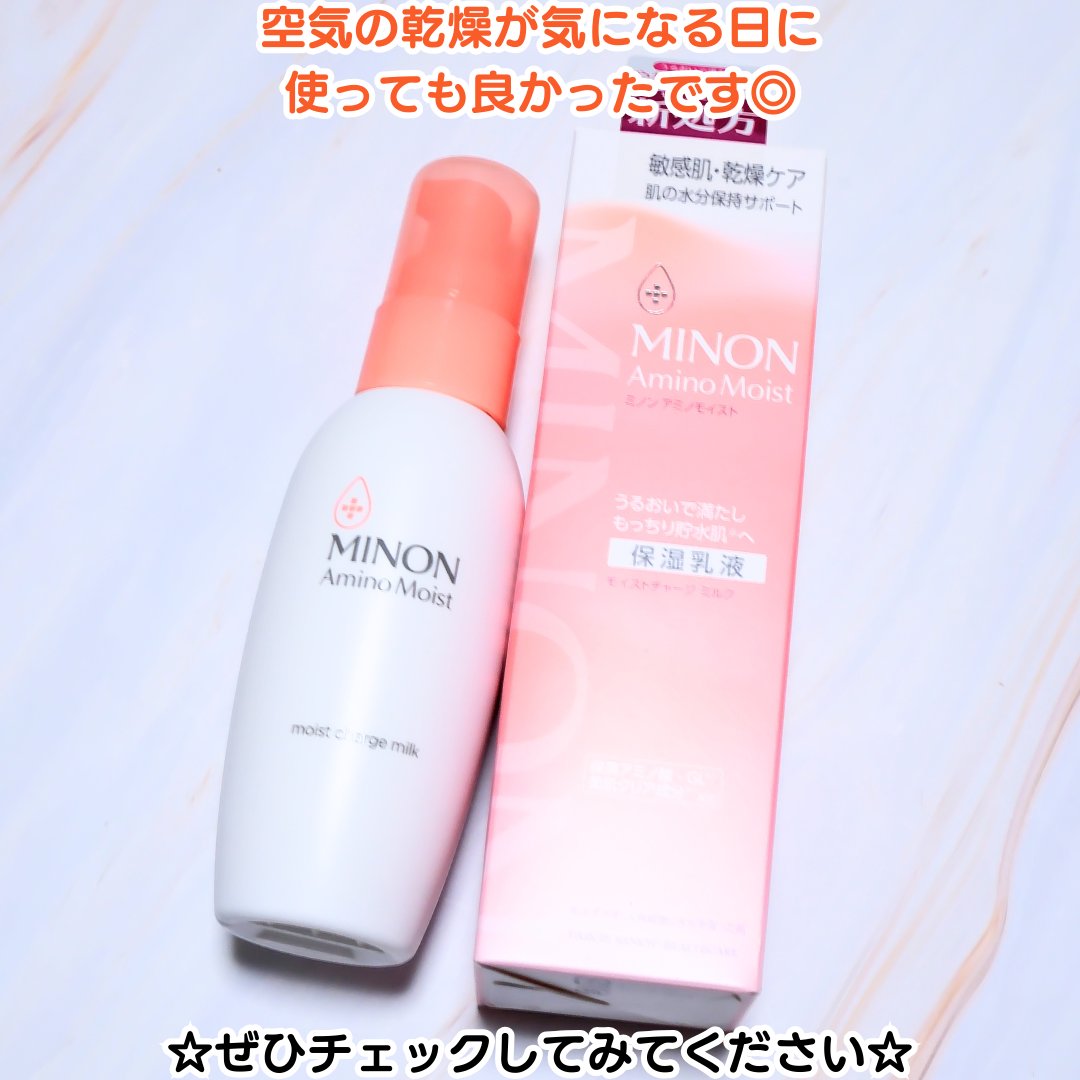 ミノンから製品の提供をいただきました。第一三共ヘルスケア株式会社ミノンアミノモイストモイストチャージミルク製品名:ミノンアミノモイストモイストチャージミルク8月にリニューアルした「ミノンアミノモイスト」の敏感肌・乾燥肌ライン!やさしい想いはそ...